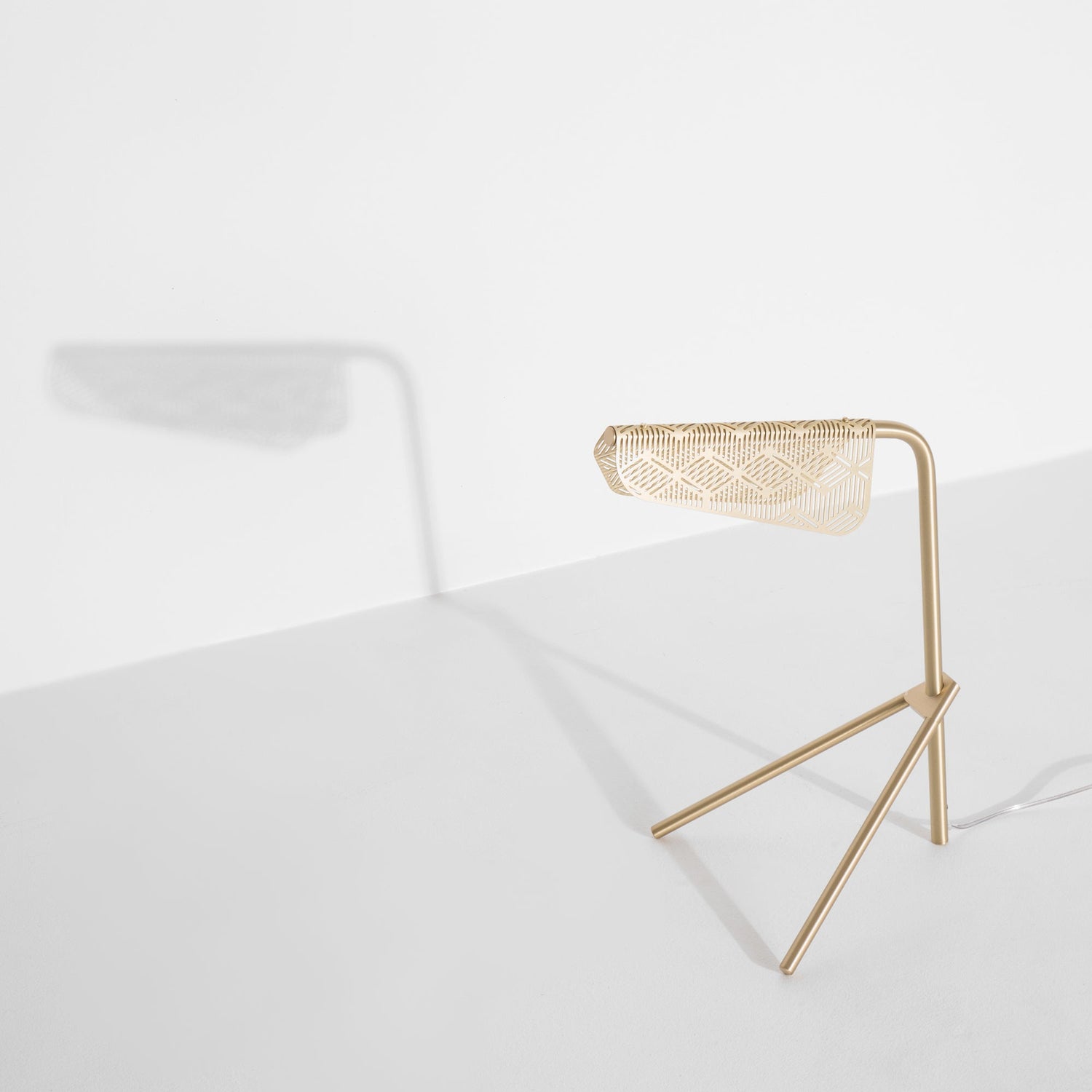 A tabletop design that brings angular style and textured form, the Mediterranean Table Lamp from Petite Friture offers well-accented lighting design for your contemporary abode. Inspired by laundry billowing on balconies in the Mediterranean breeze, this table lamp is crafted from brushed brass and outfitted with LED technology for a perfectly diffused glow. Station atop your favorite at-home work space for an elevated task lamp design or flank either side of a living room sofa to bring a dynamic look to your seating set up.