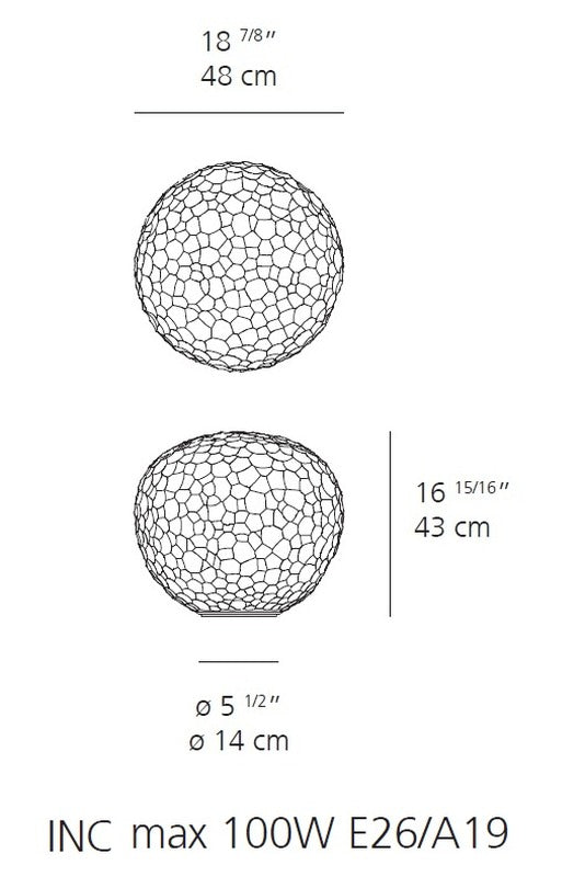 A family of lamps available in five different versions: table, table with stem, floor, wall or ceiling and suspension.