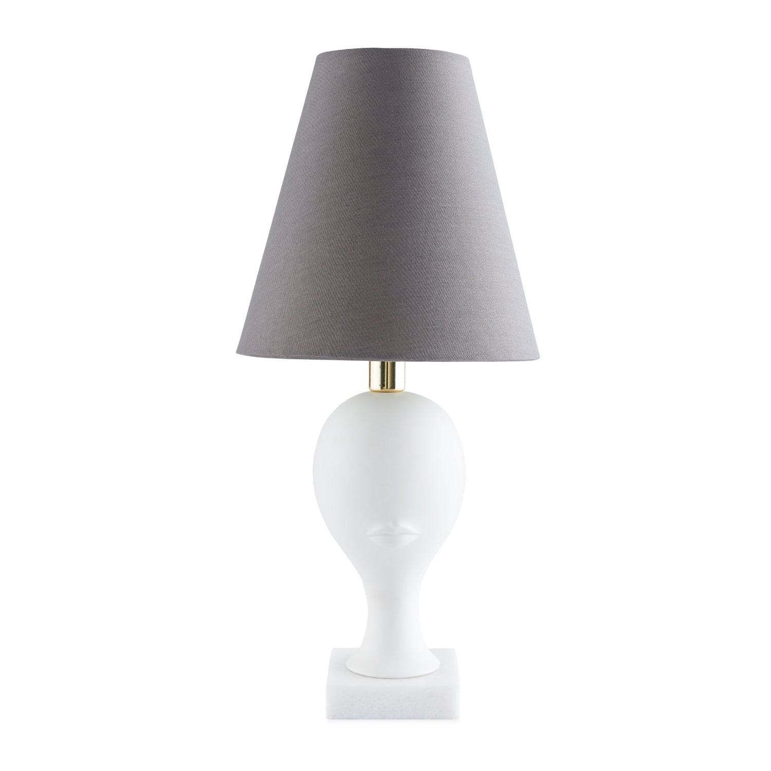 The signature feminine vessel crafted from unglazed porcelain, set on a thick marble base, and topped with a grey poplin shade. The perfect bedside companion, and intriguing even before you flip the switch.