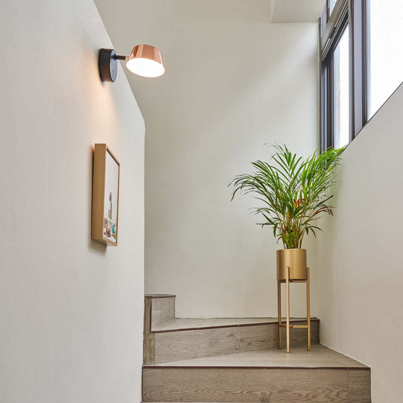 Using the basic elements to create the picture of a light,the OLO Wall Lightis designed to be limitless in possibilities. Featuring a rotatable lamp shade embedded in a hollow circle base, this wall sconce provides glare-free LED lighting,creating practical as well as ambient light. With an easy one-touch-dimmer, youcan effortlessly control the brightness within any space and create the ambiance you desire. Perfect for bathrooms, stairways, and above bedside tables, this wall light is available in a variety of finishes to suit your space and bring the brightness you desire to every corner of your home.