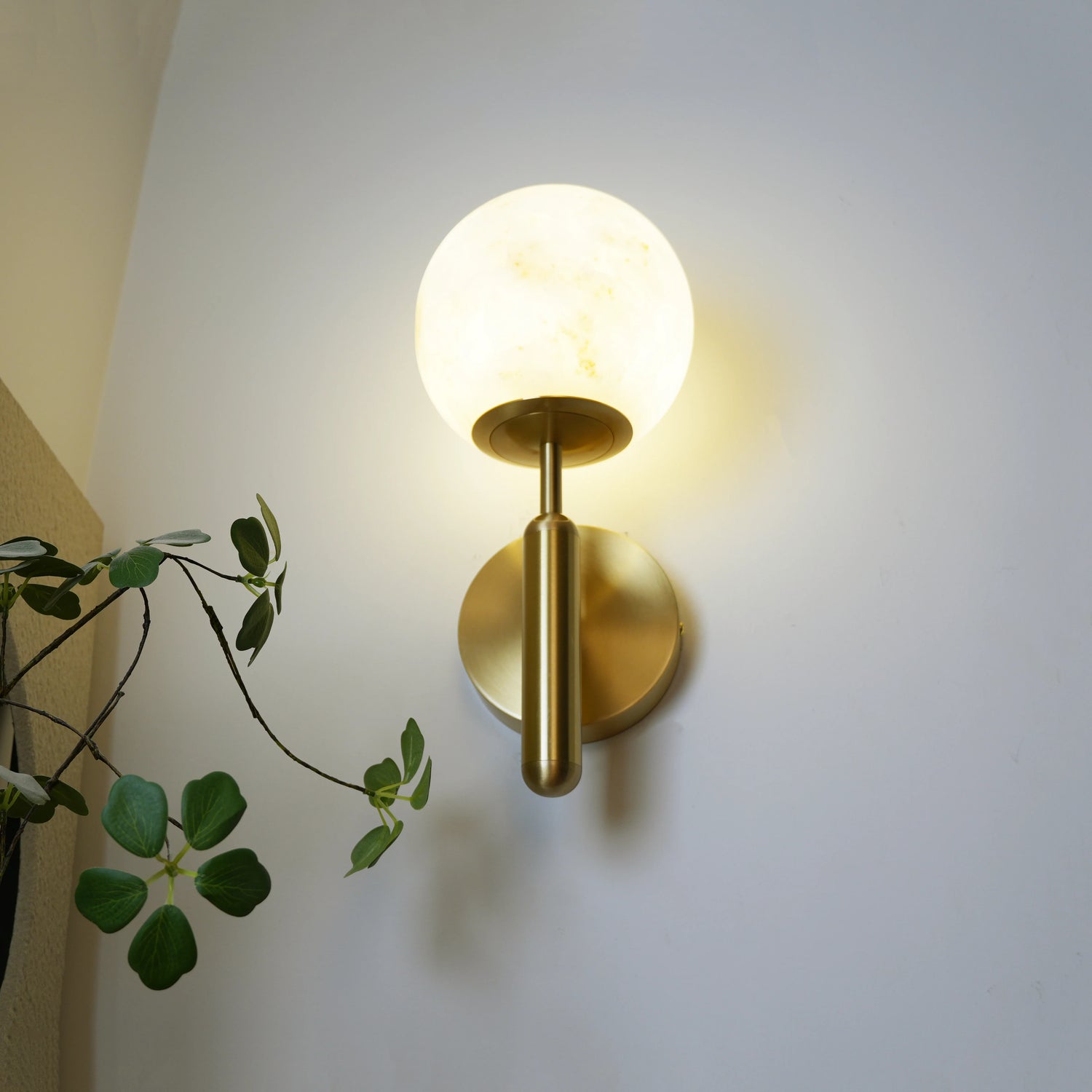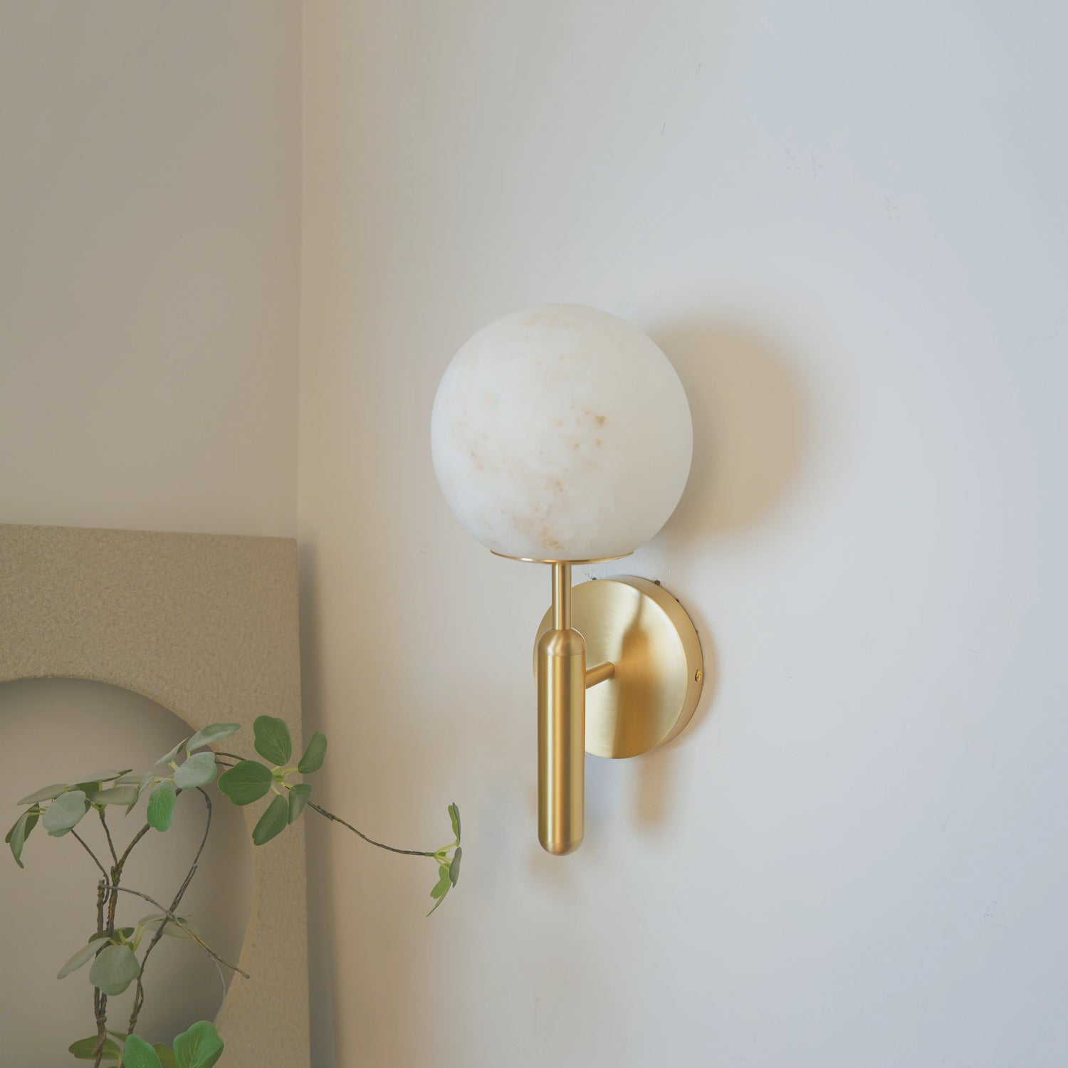 Bring a touch of ethereal elegance to your space with the Orbis Alabaster Wall Lamp. Its unique design seamlessly combines artistry and illumination, casting a mesmerizing glow that transforms any room into an enchanting realm. Meticulously crafted with attention to detail, this wall lamp is not just a fixture, but a true work of art that will elevate your interior design.