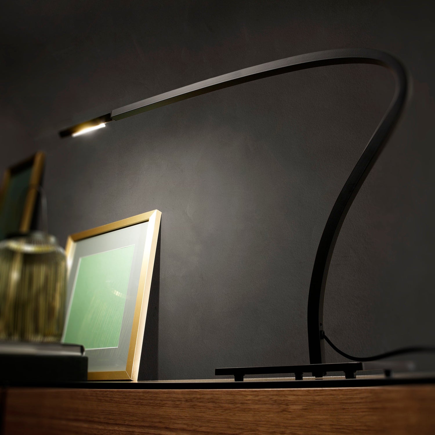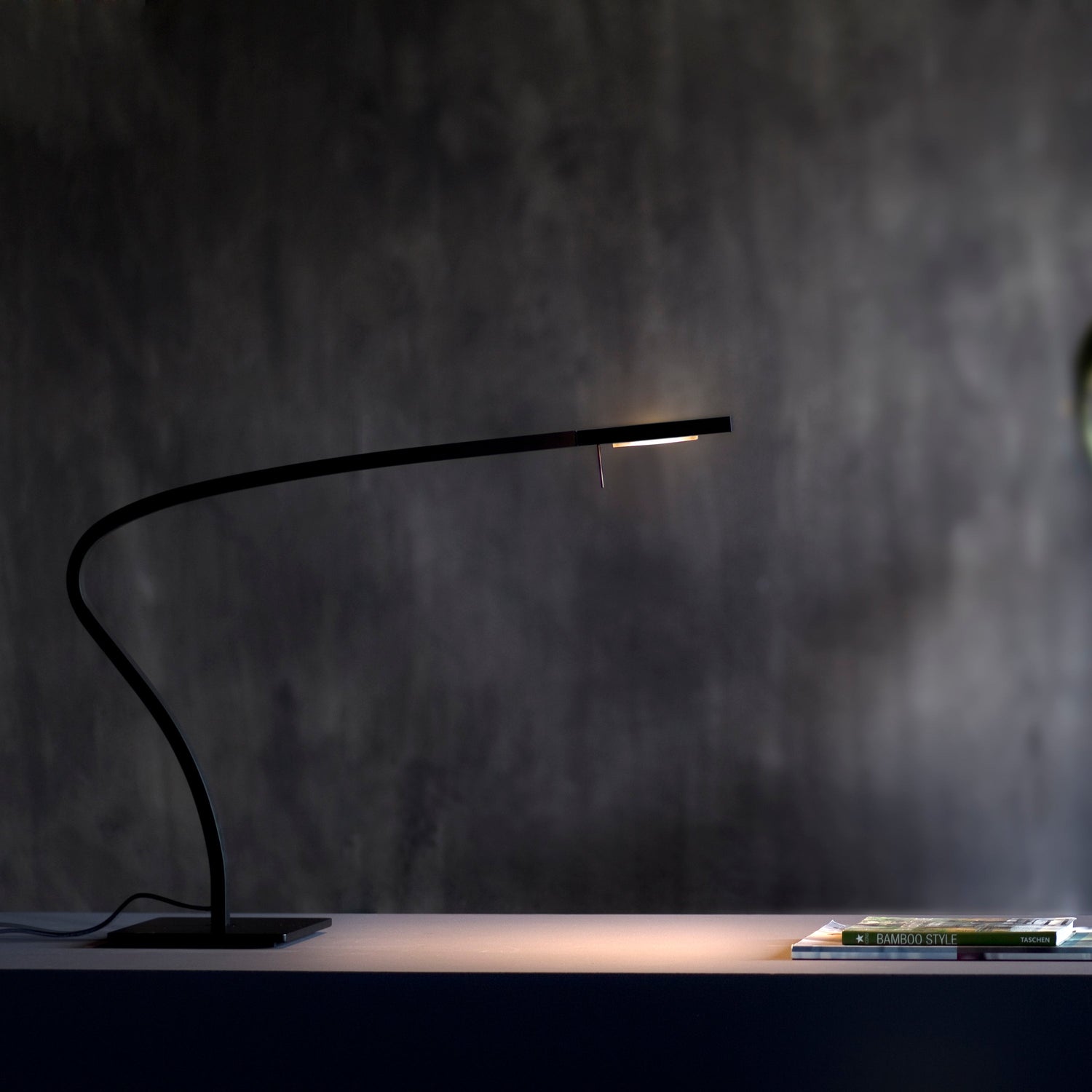This is a design that could be summed up in a squiggle, in a pencil stroke that takes light and develops it into a sinuous and fascinating form. It's something that is not at all obvious. Paraph, in its table and floor versions, demonstrates an elegant light design with the beauty of a simple gesture, just like pencil on paper. It's like a handwritten signature of a story that leaves its mark, unique in its outright nature.