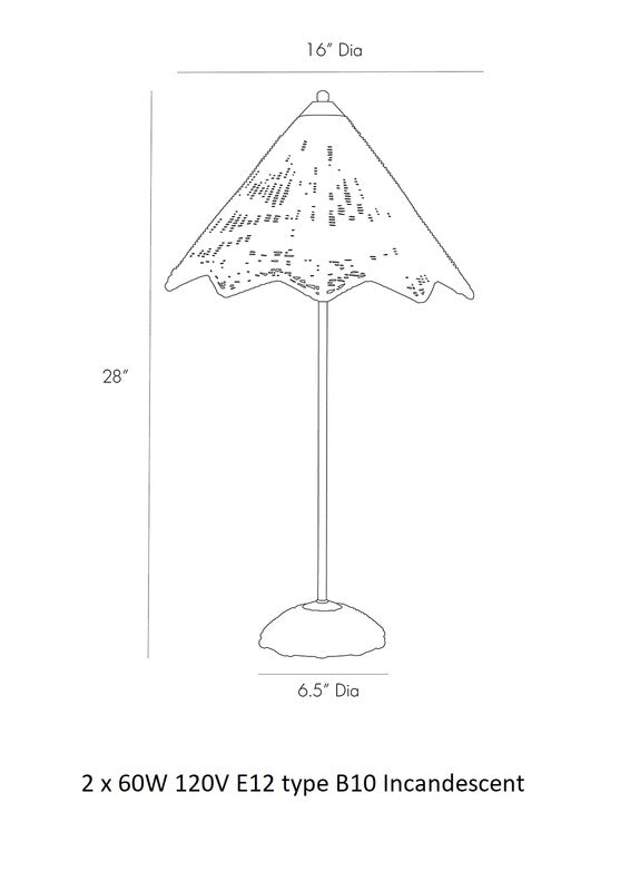 Handwoven, rattan wicker is just as Caribbean in its style as it is sophisticated. The shade and base are both made of natural rattan; the shade features an exaggerated scallop edge while the base conceals a steel plate. The stem is crafted from stainless steel, finished in a warm antique brass that contrasts the whimsical silhouette. Two bulbs are set to a dimmer switch, so you can set the mood however you like.