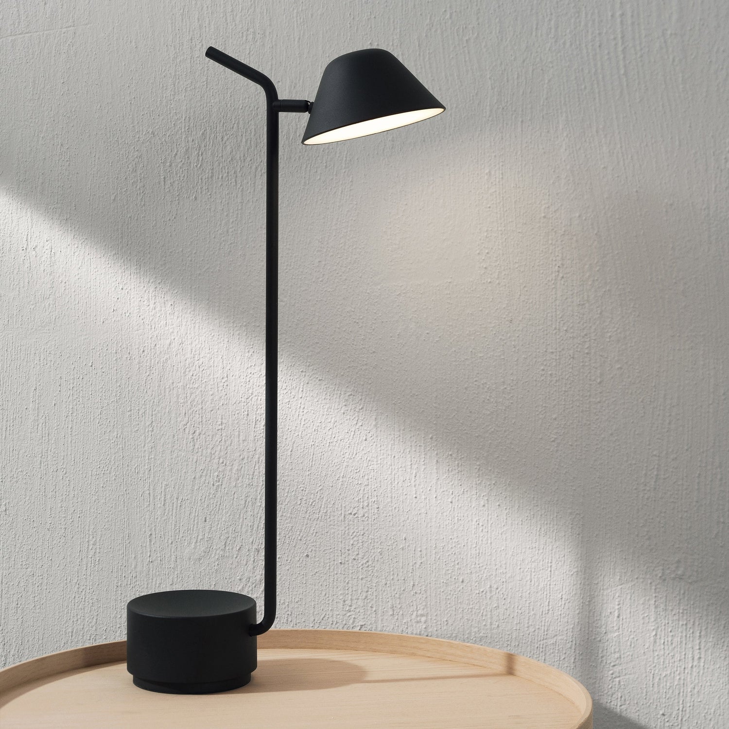 Jonas Wagell on The design: Although The form derives from a functional requirement I believe it's important that The lamp has personality and an expression. I strive to create simplistic objects and products that are intuitive and easy to understand. in essence, The Peek lamps only consist of three parts: base, stem and shade. The form is reduced to The necessities and The expression becomes iconic.