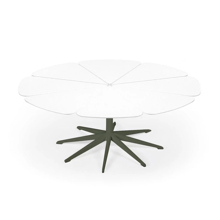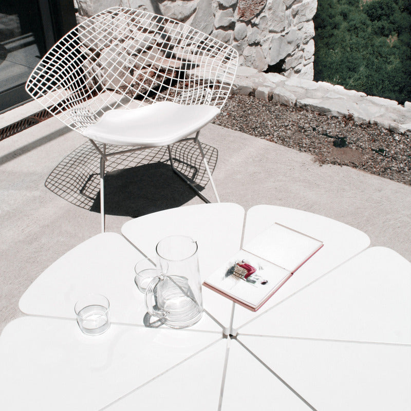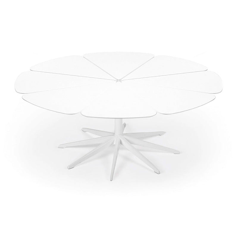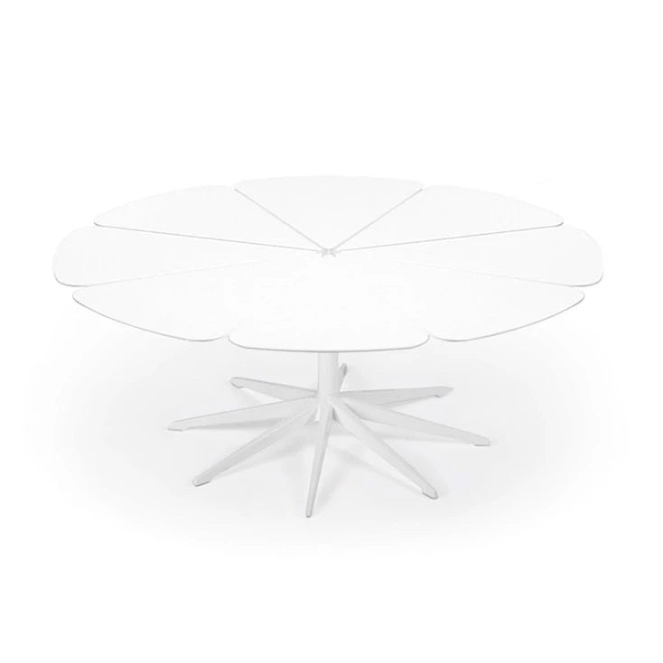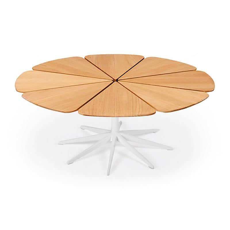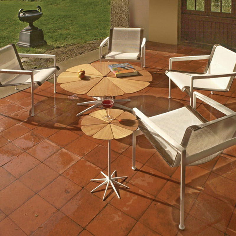 Richard Schultz cites Queen Anne's Lace as his inspiration for this delicate outdoor table with its flower-like top sprouting from the elegant pedestal base. Each petal expands and contracts independently, ensuring stability in changing weather.
