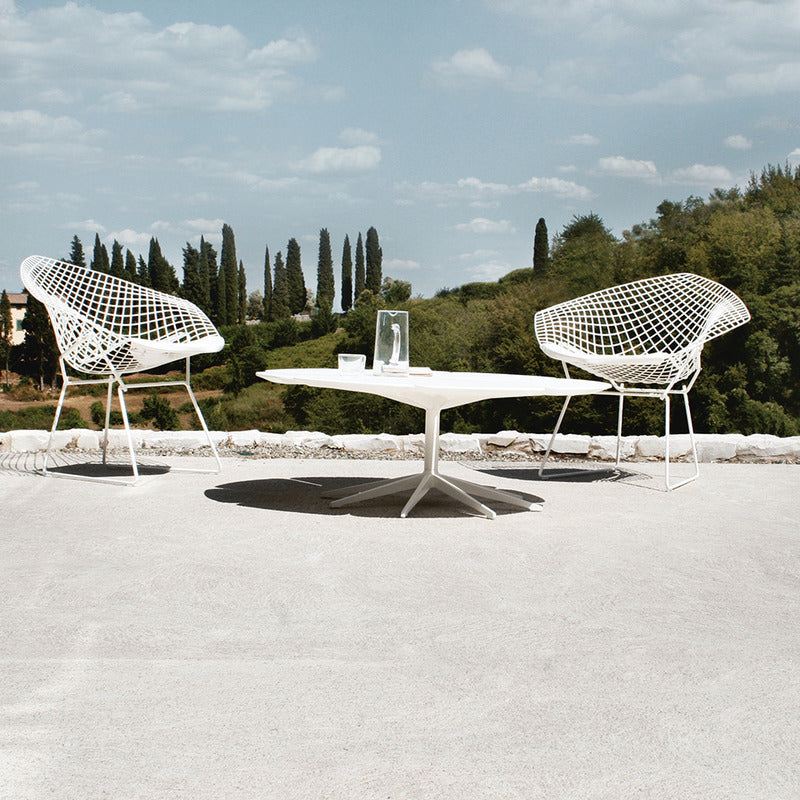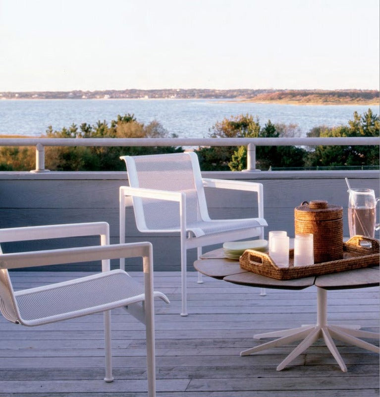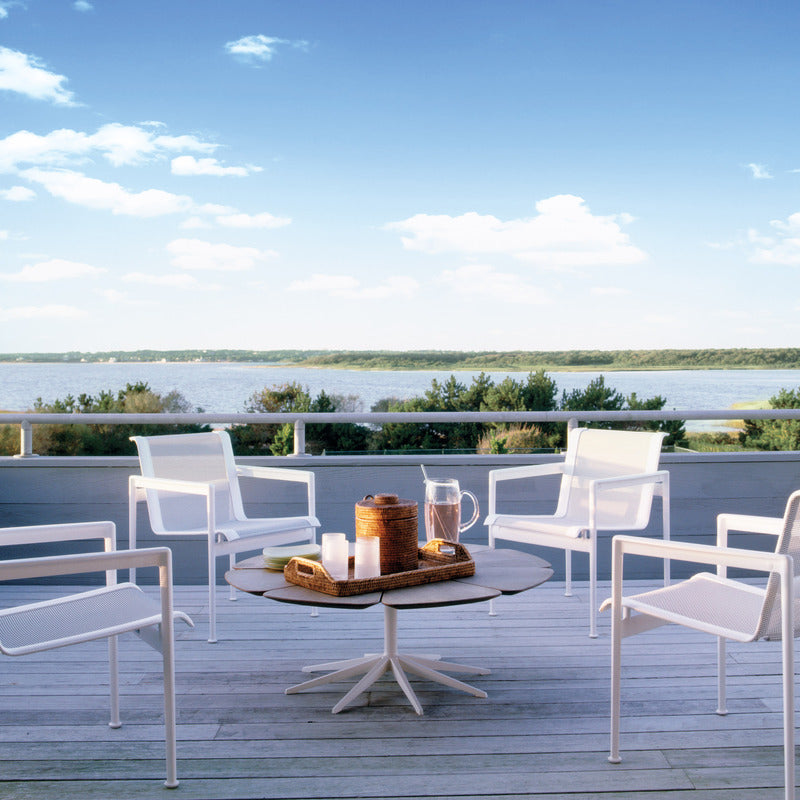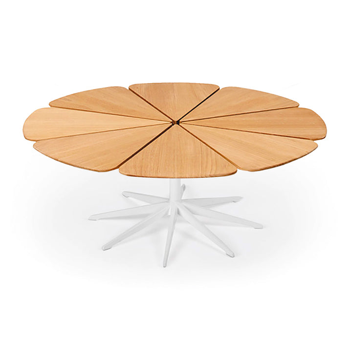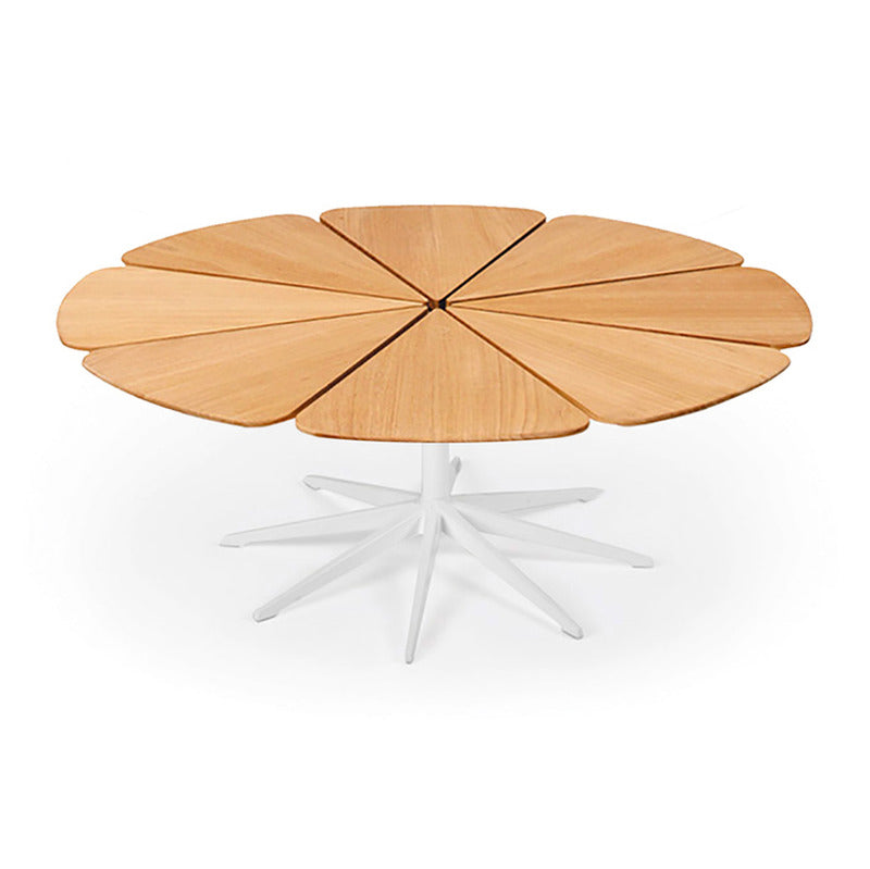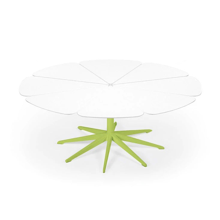 Richard Schultz cites Queen Anne's Lace as his inspiration for this delicate outdoor table with its flower-like top sprouting from the elegant pedestal base. Each petal expands and contracts independently, ensuring stability in changing weather.