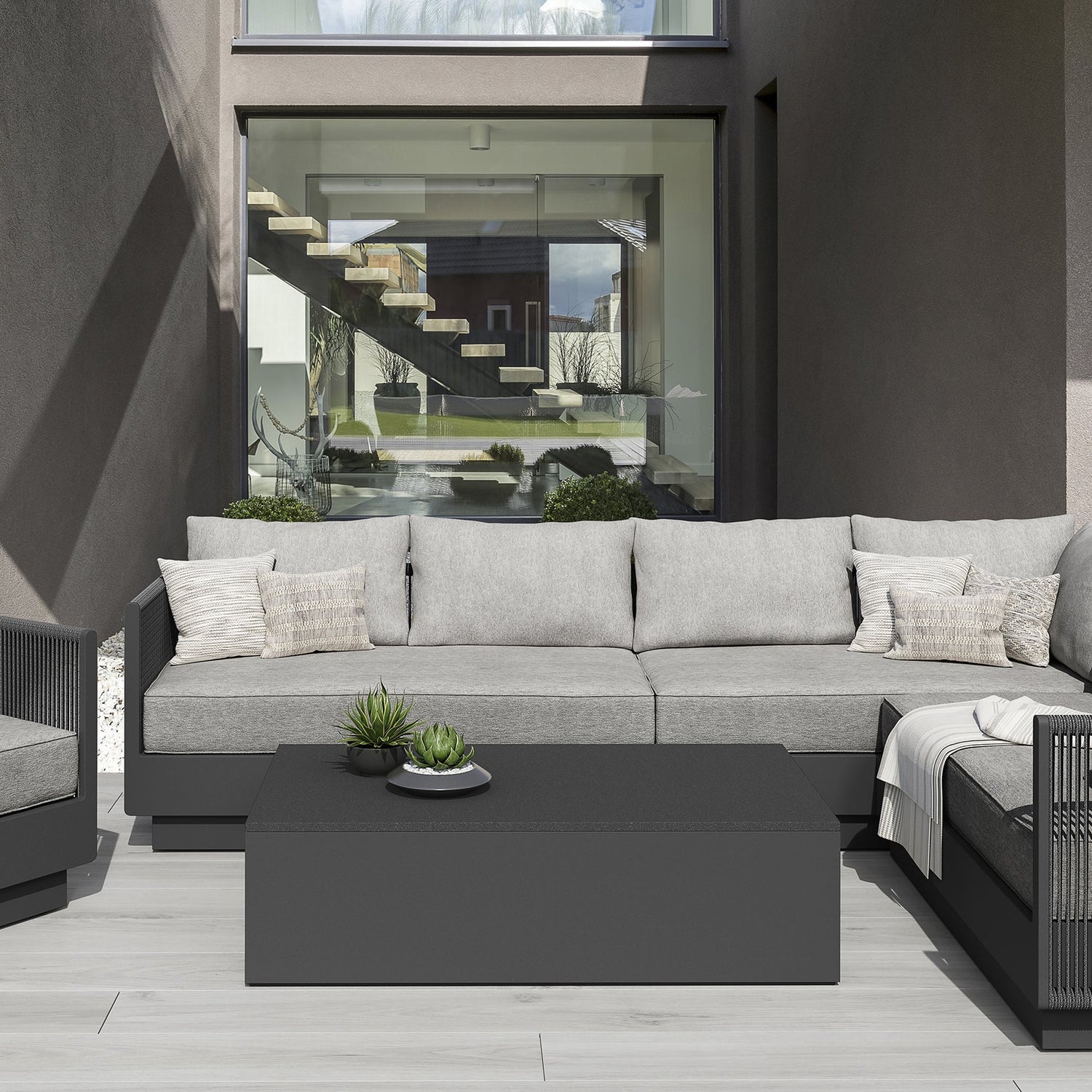 Oftentimes forgotten or offered as a secondary solution, outdoor coffee tables are not always stylish or working to elevate your space. With the Porto Coffee Table from Azzurro Living, a streamlined modern approach offers a beautiful and contemporary addition to your outdoor lounge areas or seating groups. Crafted from aluminum with a natural stone top, this coffee table brings a sleek touch to your home while offering a functional and practical furniture addition. Pair with handwoven wicker club chairs and colorful outdoor pillows for a cohesive look and you'll be in relaxation mode in no time.