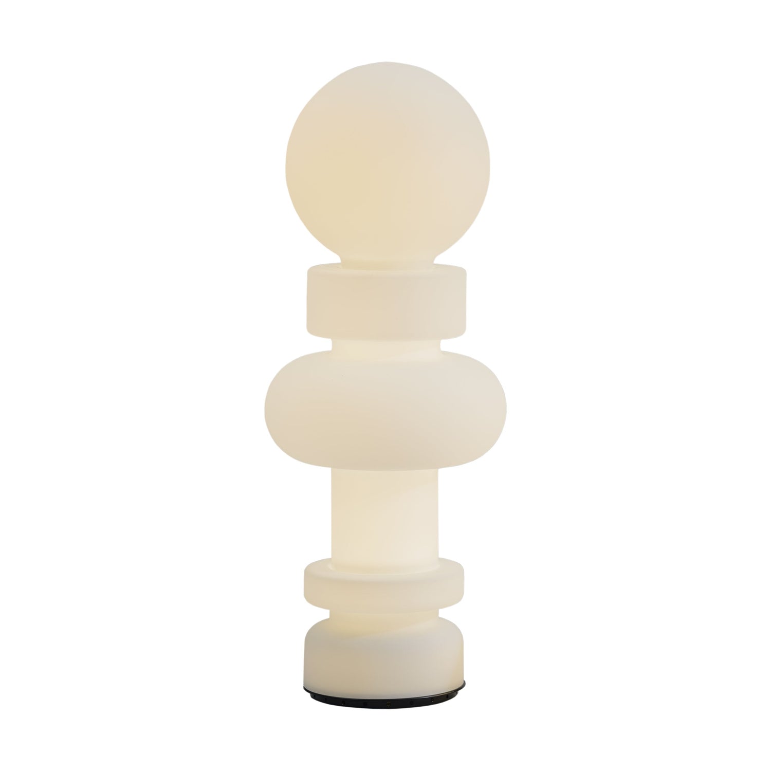 Inspired by the game of chess with their soft and sinuous shapes, King and Queen are the key characters of the chessboard. Their profiles stand out clearly in the white light diffused by the opalescent glass. Vertical King, screwed around a wide horizontal Queen circumference. They can be placed side by side, or recalled from different points in an environment, or even proceed independently, each of these lamps has its own personality. Floor or table, coffee table book or desk, both King and Queen have the spatial presence to create a context. The dimmer that allows you to modulate the light makes it a surreal element with different degrees of intensity: a representative element that releases energy into the space when the light is bright.