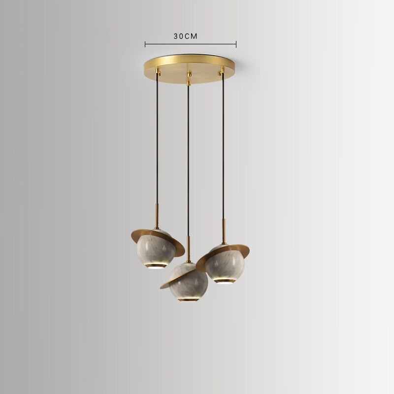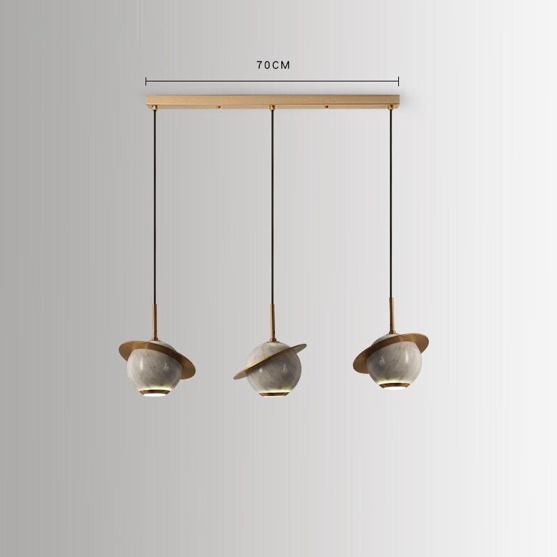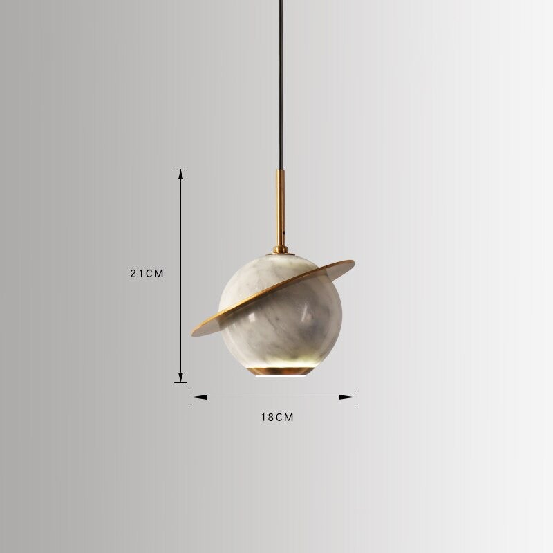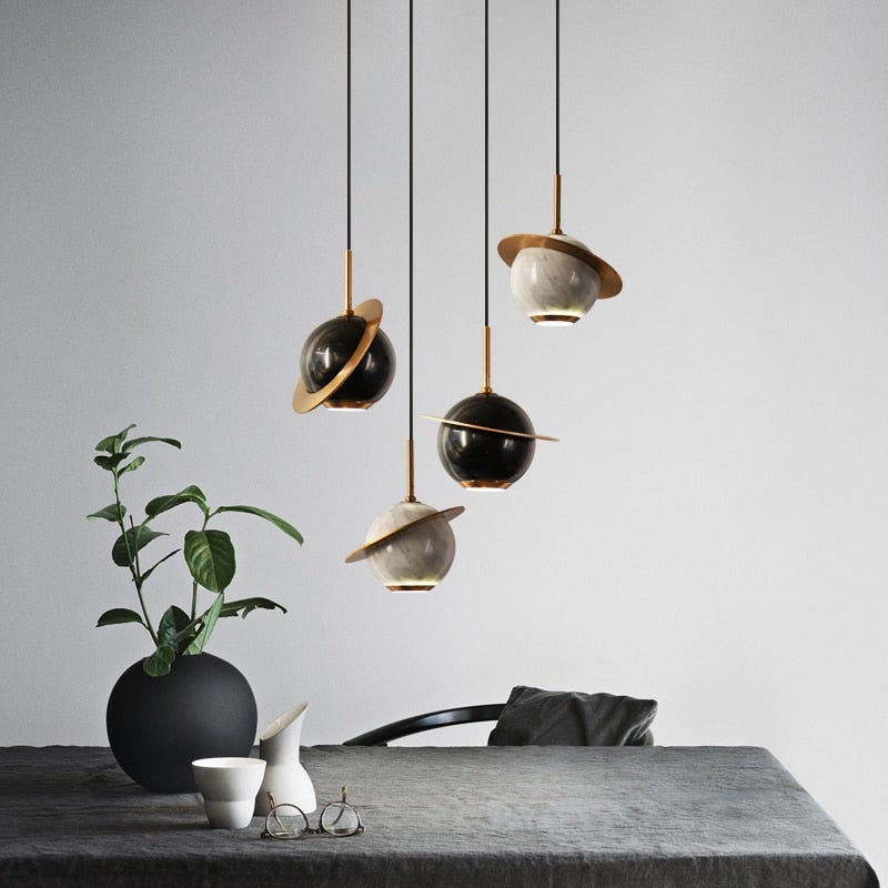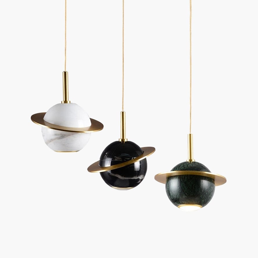 The Remi Pendant plays with different materials providing a unique yet modern "Saturn" design. Made with marble and gold brass, this pendant creates an exquisite juxtaposition making it simply irresistible and a show stopping piece. Create a pleasant ambiance with minimal effort through its contemporary and sleek design. Choose from three marble colors to best represent your aesthetic.