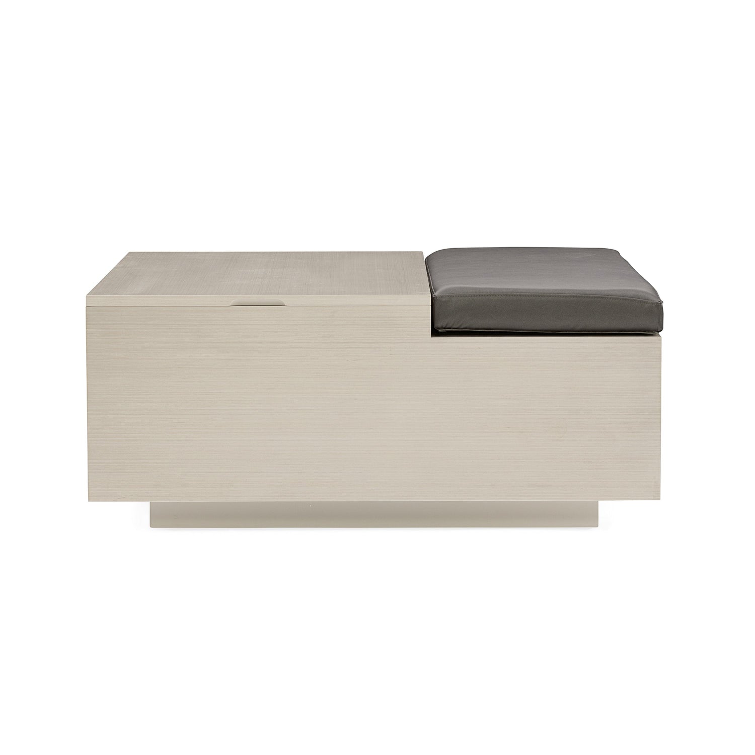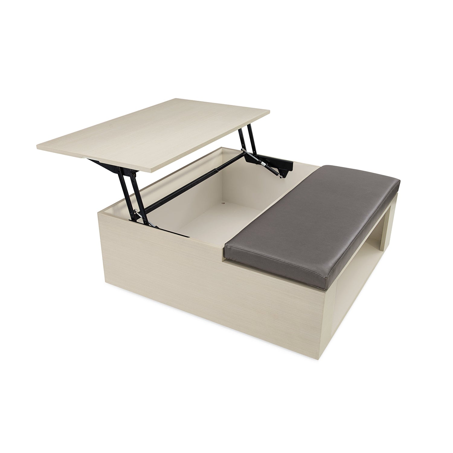 More than just a piece of furniture, the Repetition Bunching Cocktail Table manages to effortlessly combine form and function to establish itself as an incredibly useful design piece. Featuring an Asian Hardwood frame finished in ash taupe, this cocktail table features open storage spaces for books and decor, a fabric upholstered seat cushion for additional seating, and a lift top feature to be used as a dining surface or workspace. Below the lift top is additional storage space for blankets, pillows, and late night movie snacks.