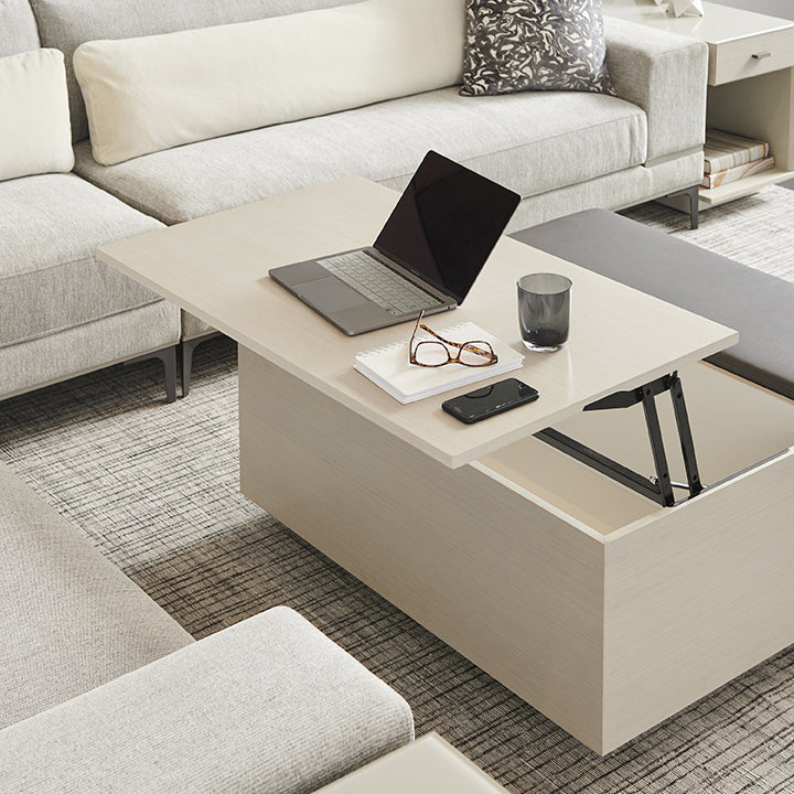 - Lift top feature provides an impromptu work space or easy dining surface that avoids making a mess