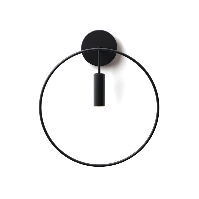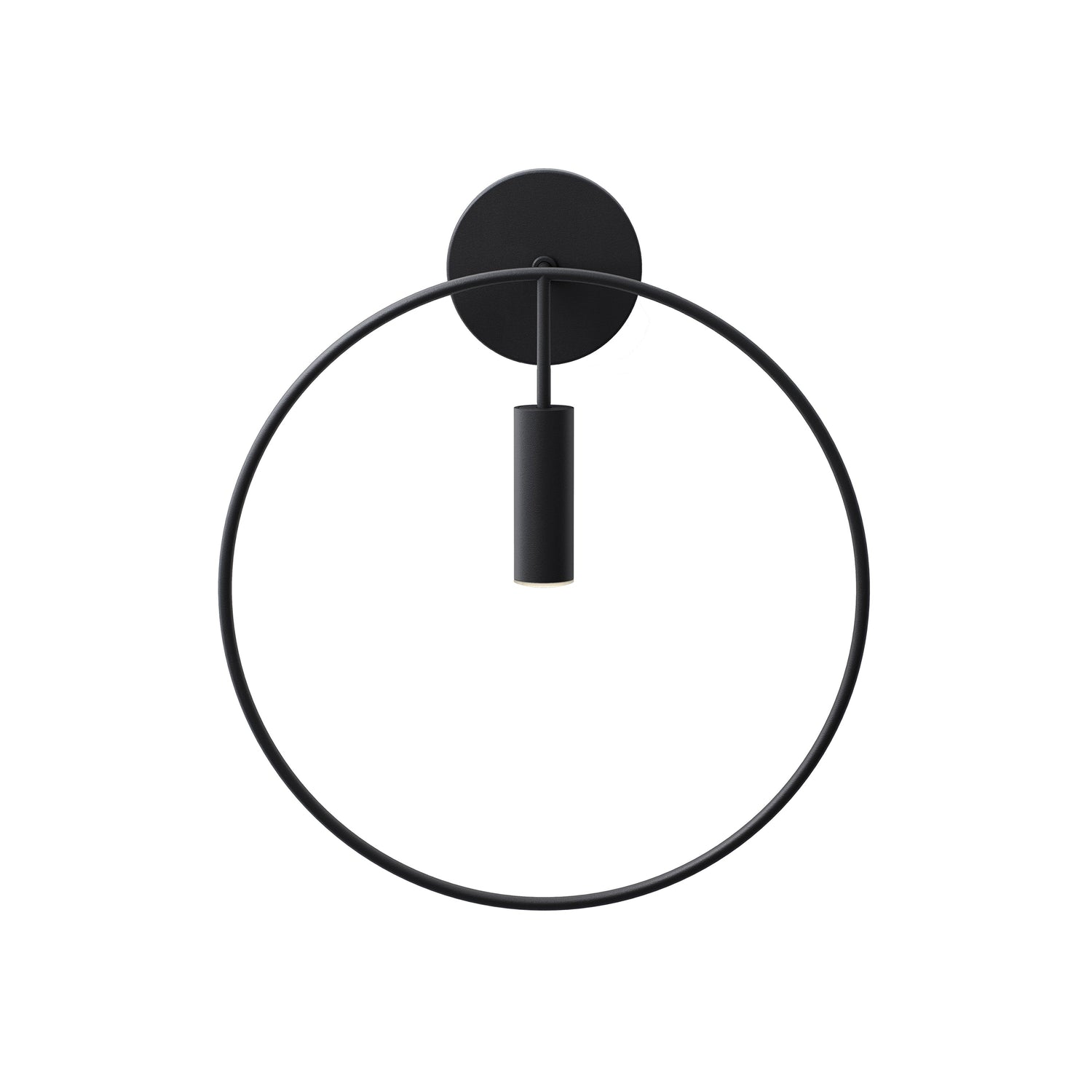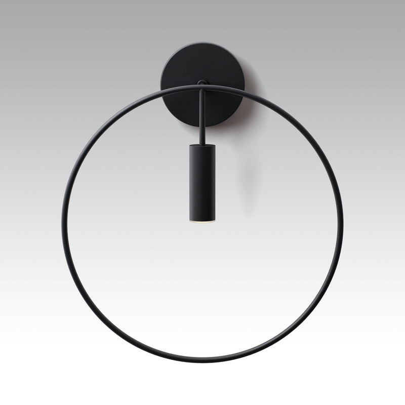 Metallic wall lamp with a circular body, cylindrical aluminum head and acrylic (PMMA) lens diffuser. 50 degrees angle acrylic optic lens conversion kit is optional.