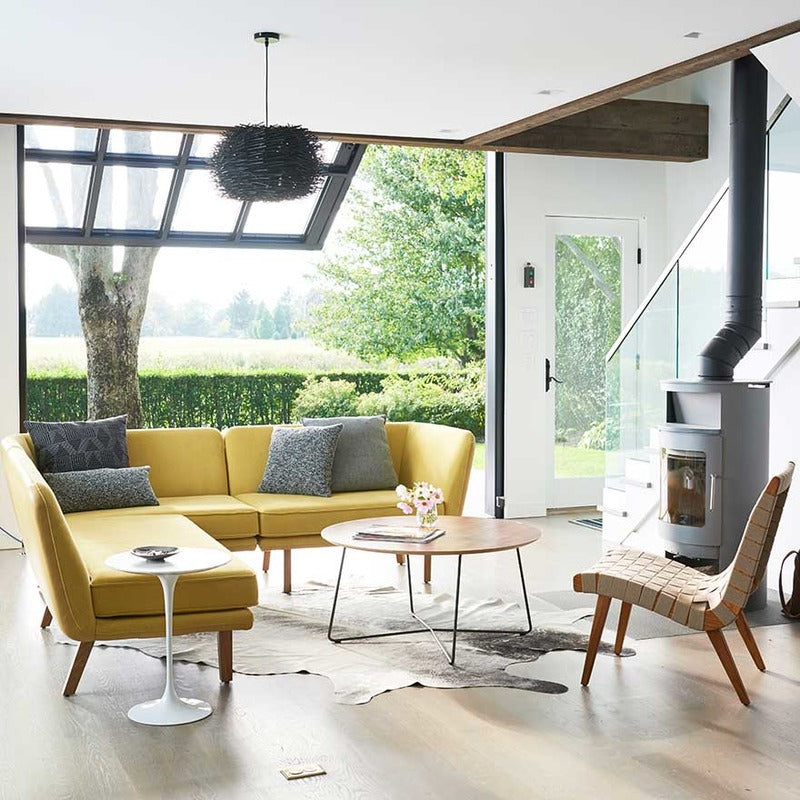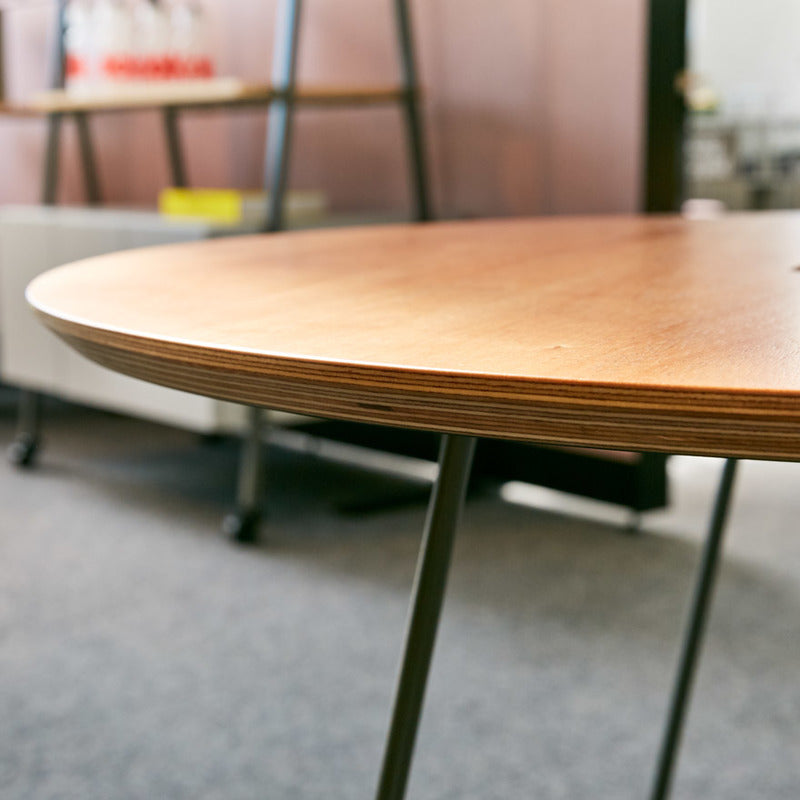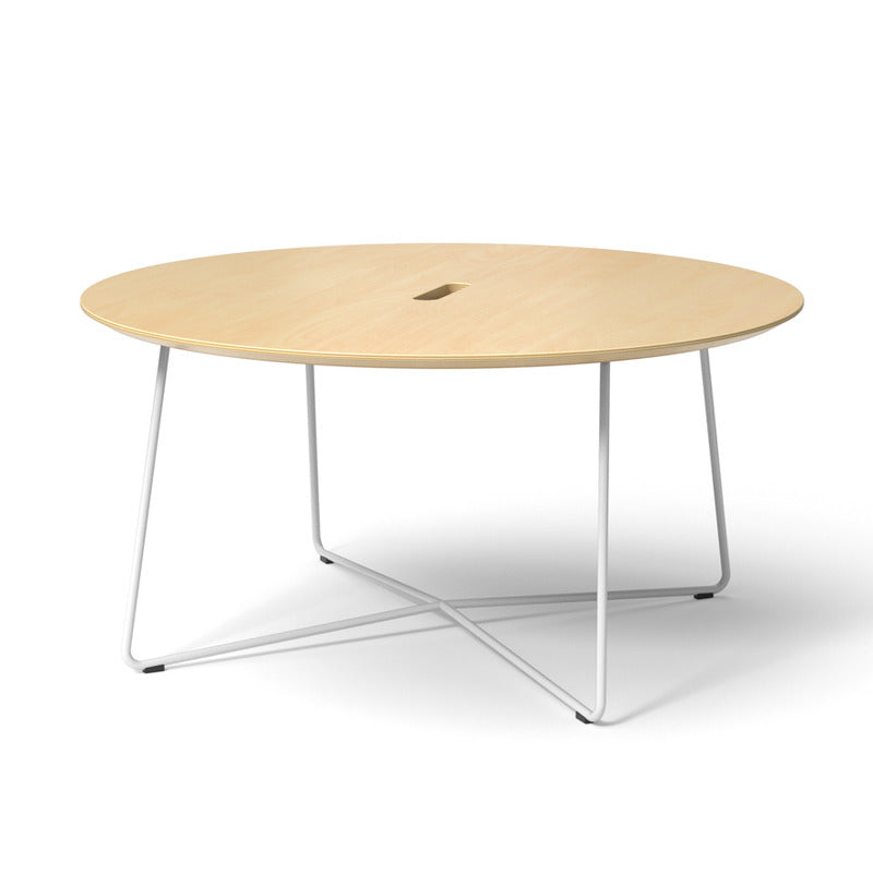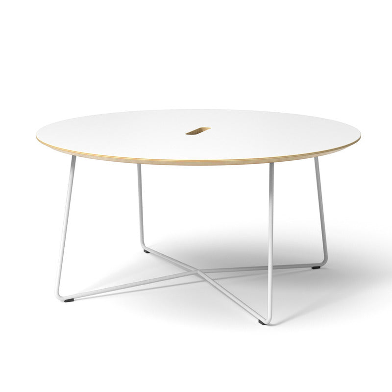 The Rockwell Unscripted Side Table is a lightweight, multi-use table that is at home wherever you put it. A combination of solid birch plywood top and steel wire base lend and industrial edge. The capsule-shaped handle allows you to move the table easily, while also serving as a cord drop for electronics and lighting.
