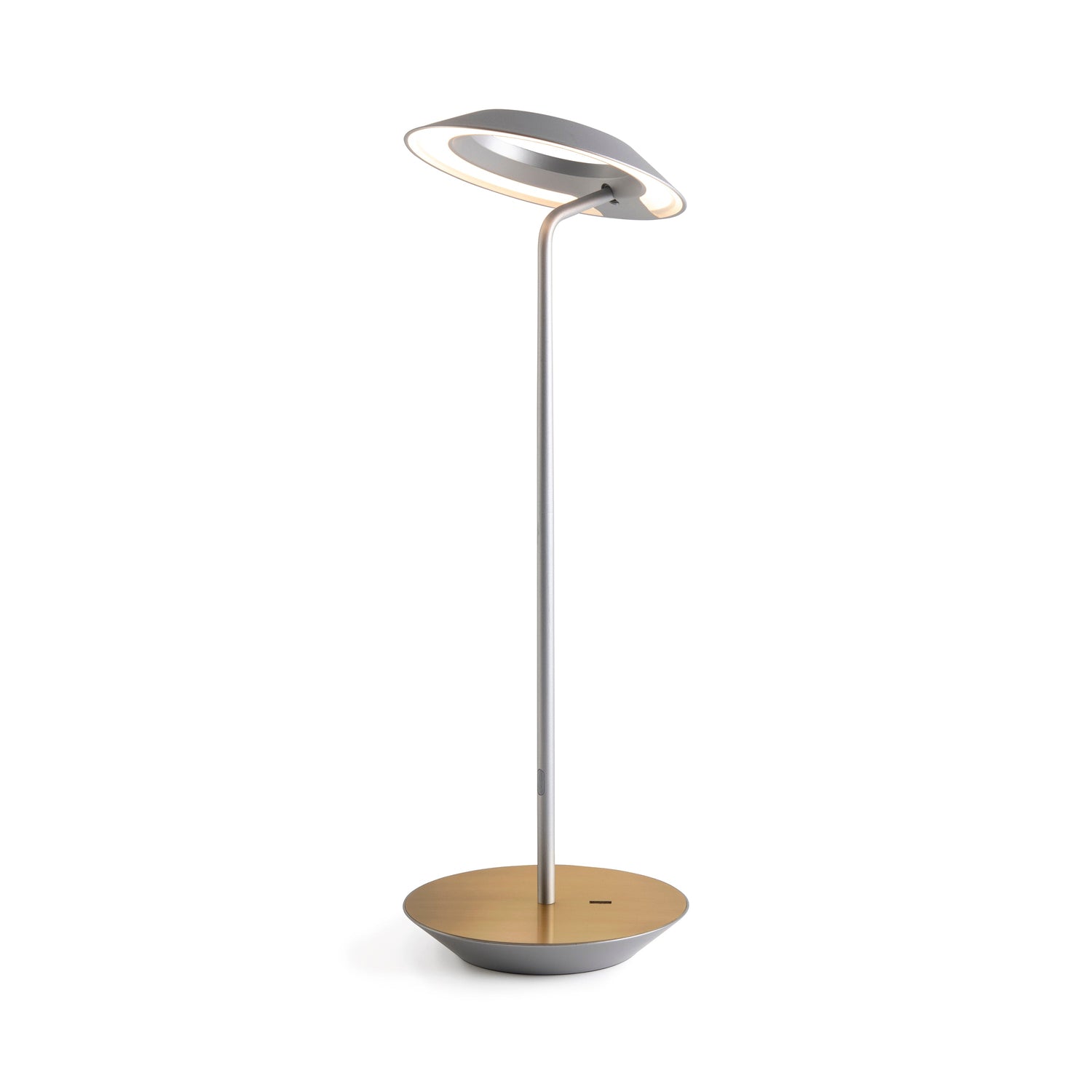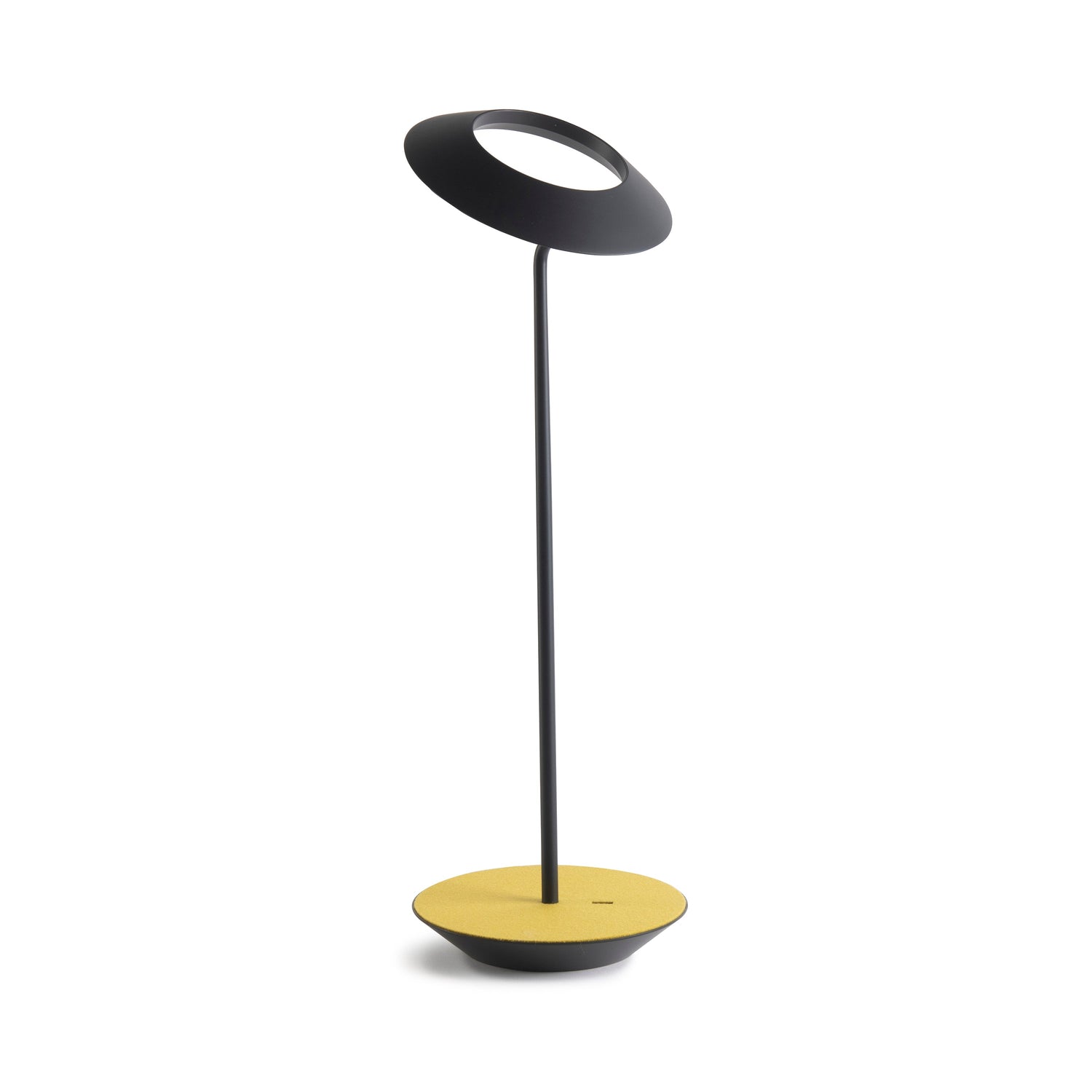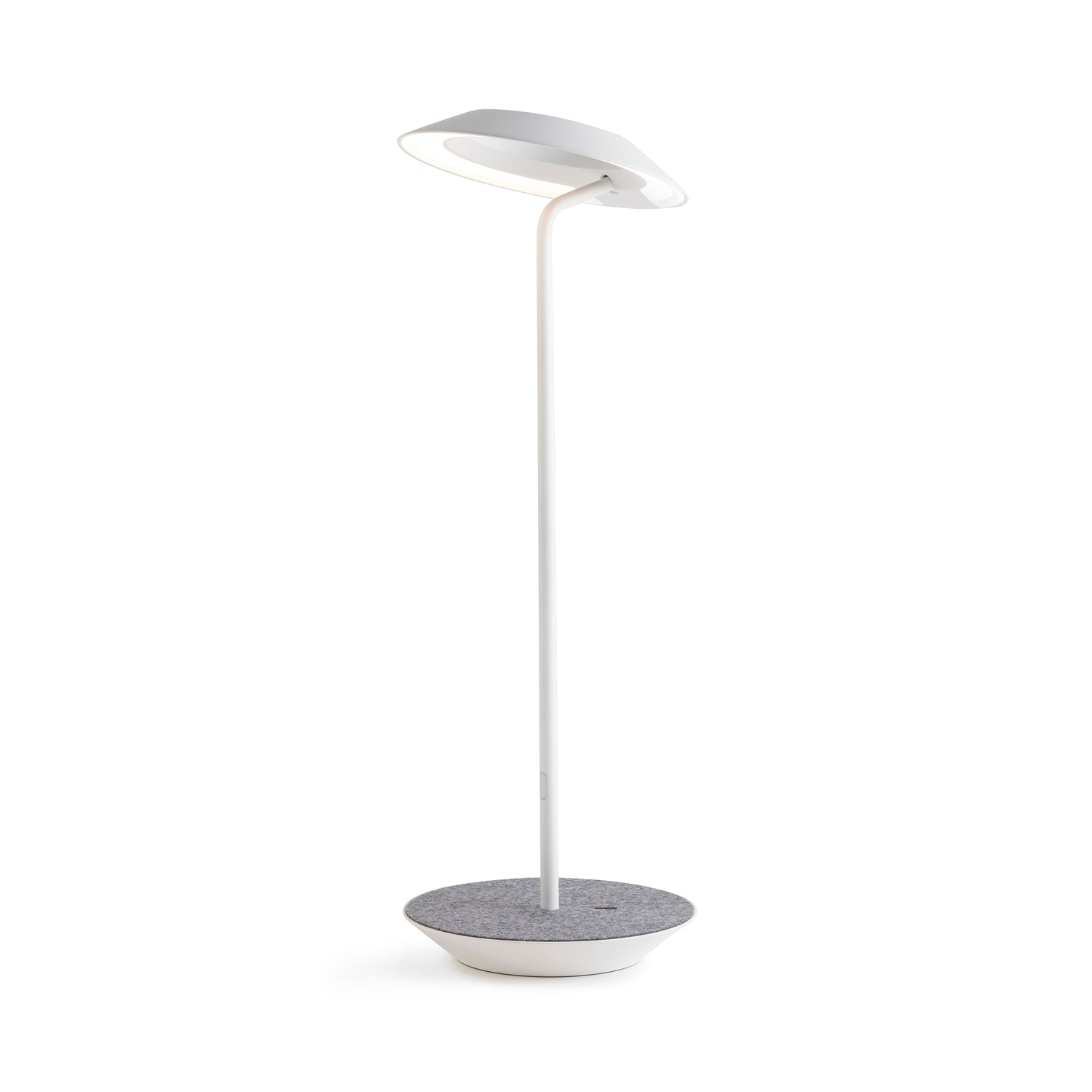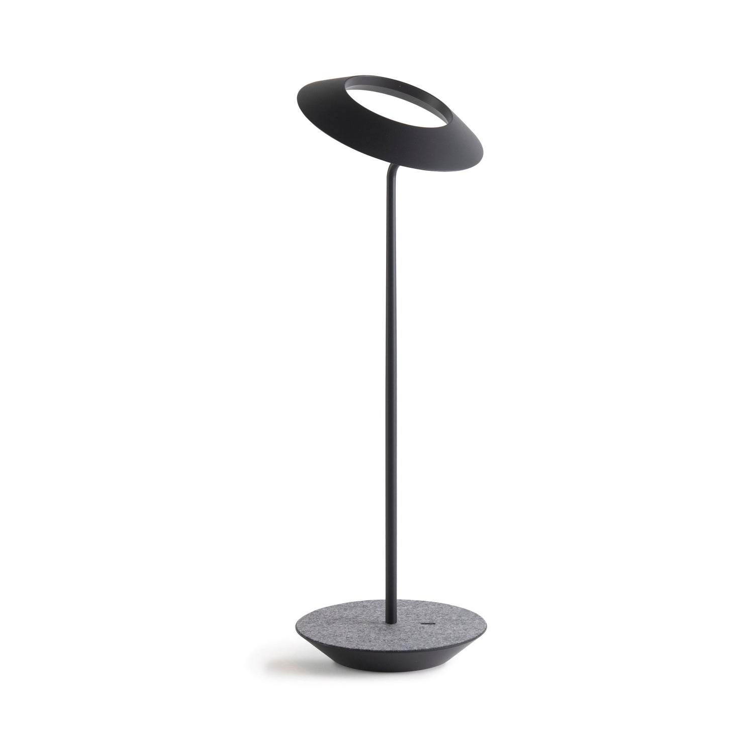 The Royyo Desk lamp adds an elegant flair to any space with its minimal wiring and pleasing circular design. Its minimal silhouette houses complex inner technology for a marriage of form and functionality. Royyo's embedded USB port allows users to charge any USB - compatible device. Interchangeable base plate options allow users to customize at ease. Achieve unity in design by inviting the Royyo Floor Lamp, Royyo Pendant and Royyo Desk Lamp into your home.