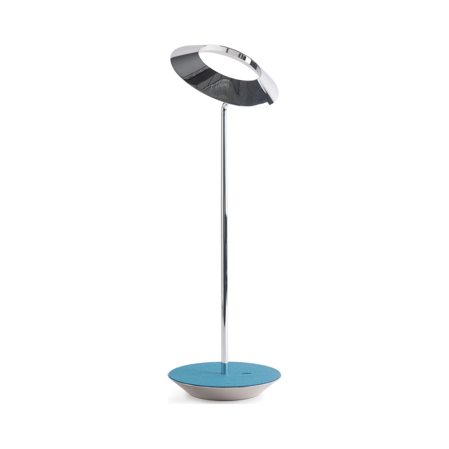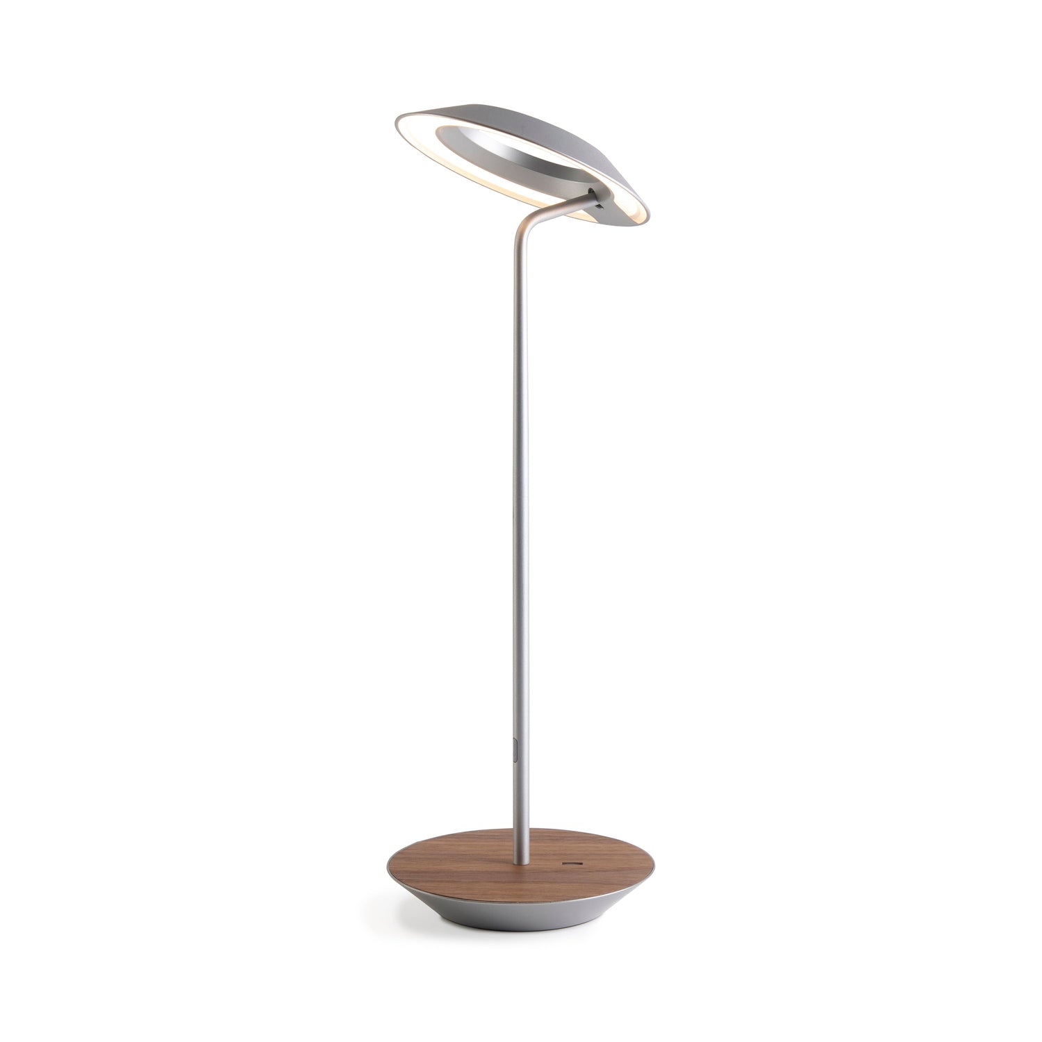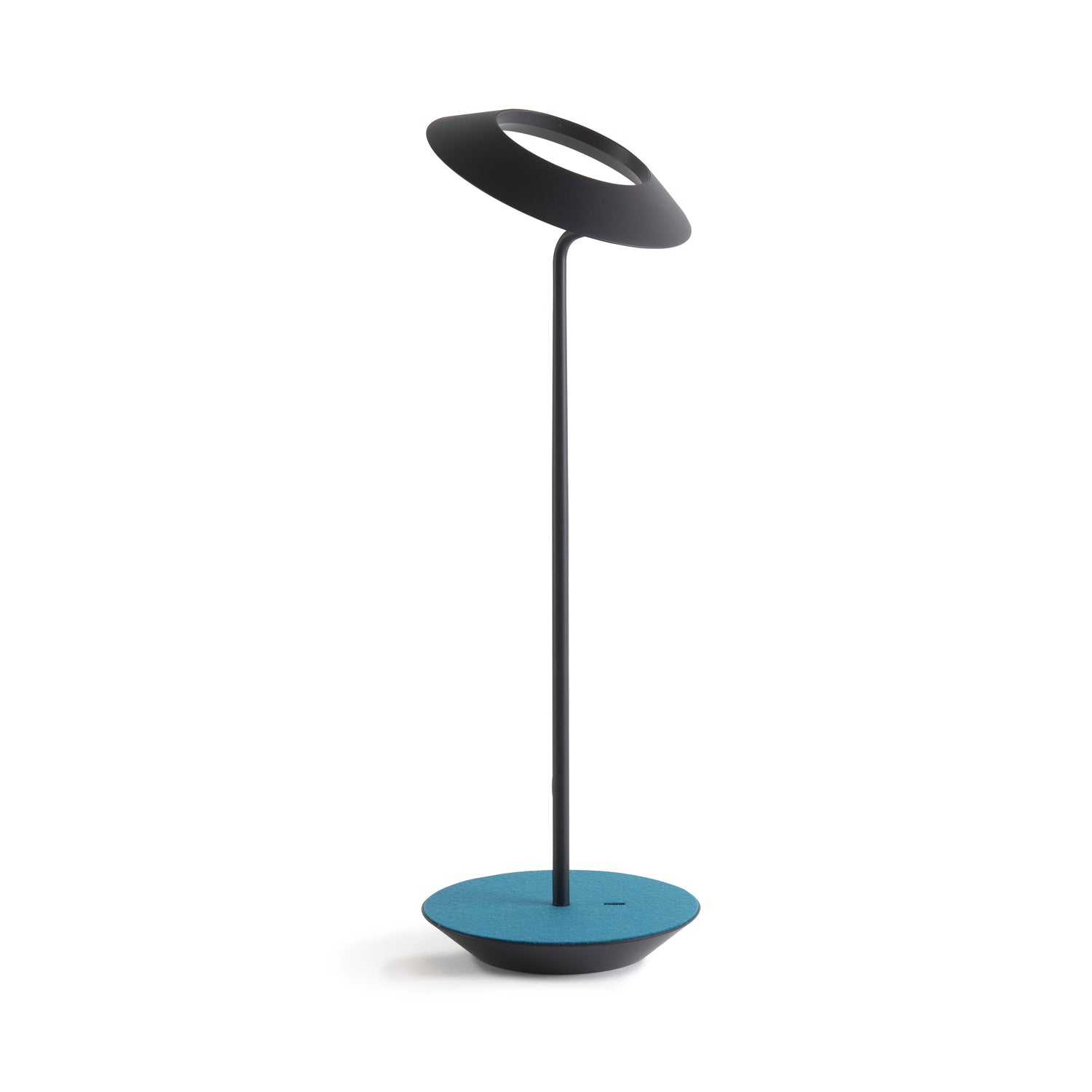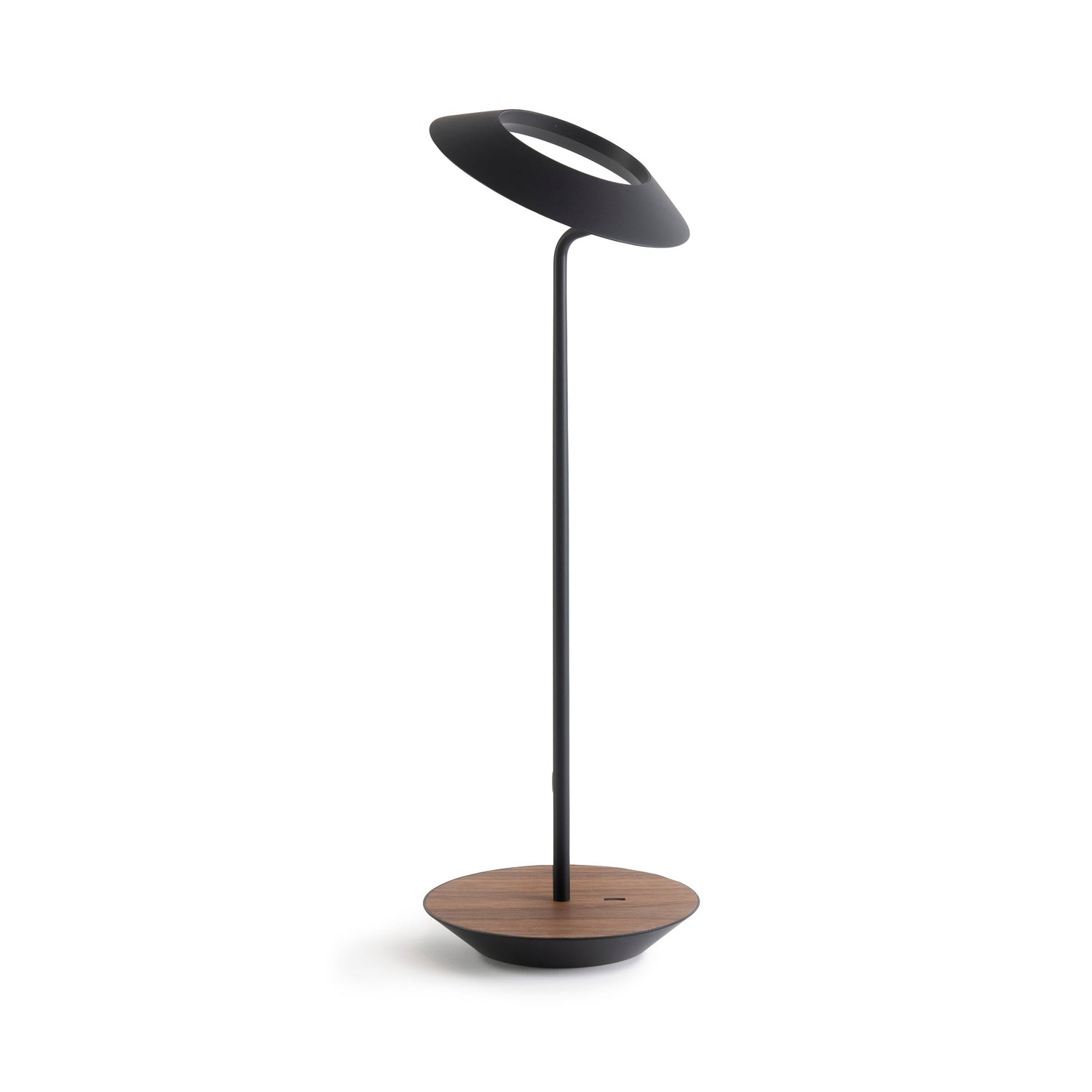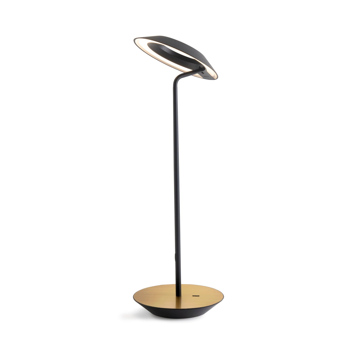 The Royyo Desk lamp adds an elegant flair to any space with its minimal wiring and pleasing circular design. Its minimal silhouette houses complex inner technology for a marriage of form and functionality. Royyo's embedded USB port allows users to charge any USB - compatible device. Interchangeable base plate options allow users to customize at ease. Achieve unity in design by inviting the Royyo Floor Lamp, Royyo Pendant and Royyo Desk Lamp into your home.