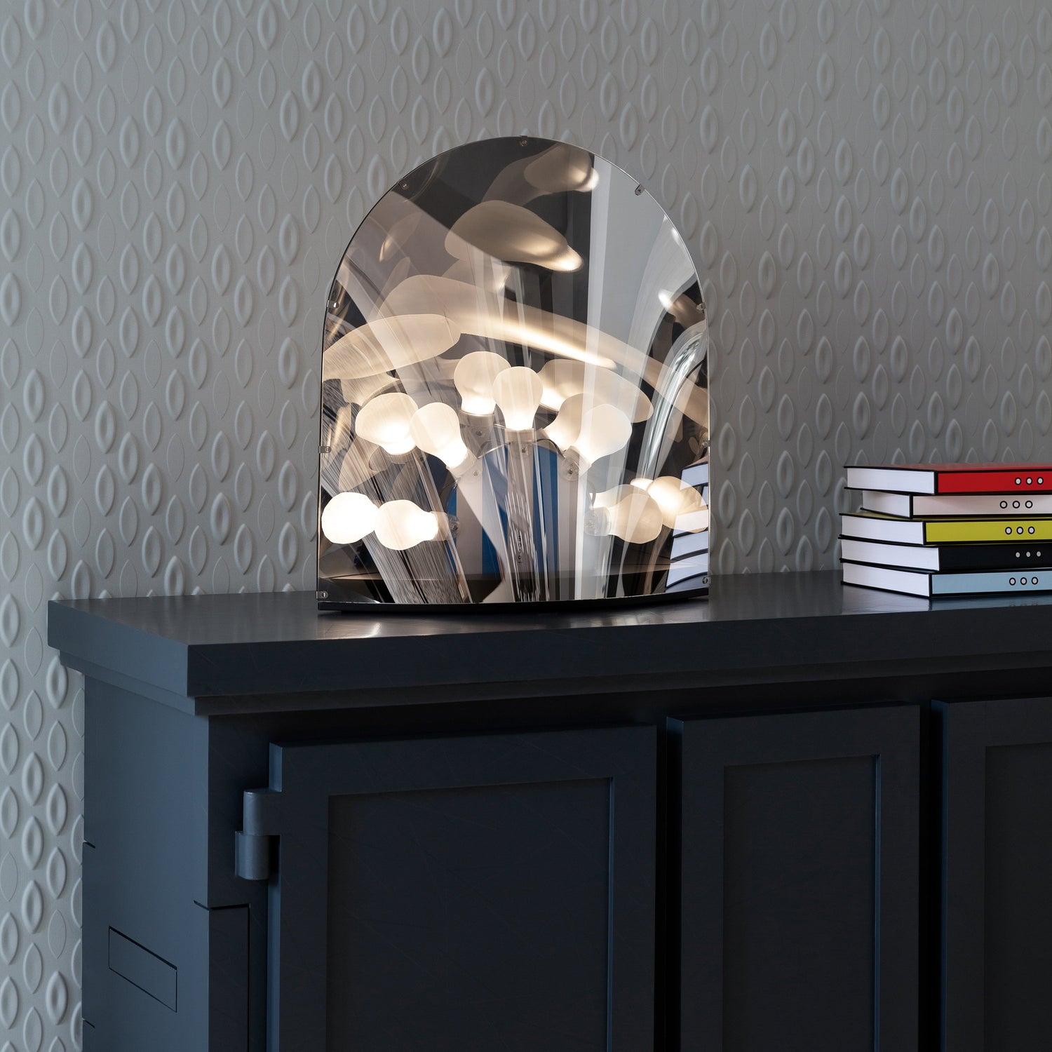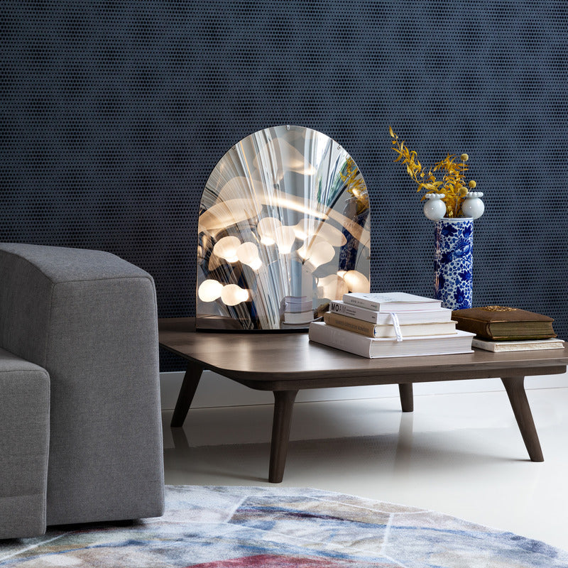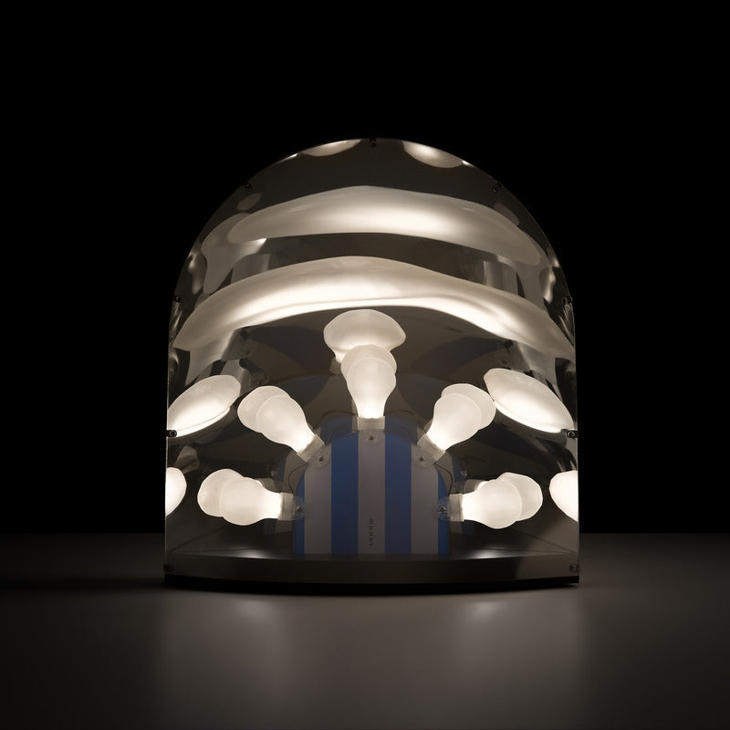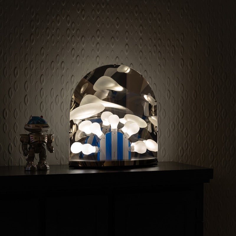 Is it a mirror? Is it a lamp? Is it a disco? Yes, it's all and more! The Space Table Lamp designed by Ward Wijnant has something truly special to show you. As if from another dimension, it wants to adapt to your environment. During the day, it sits quietly with its mirrored appearance reflecting its surroundings. Then in the dark of the night, it loves to shine its mysterious lights. Make sure to pay close attention, because when it does, its silver surface will become translucent and a new world will appear from within its ostensible mirror.