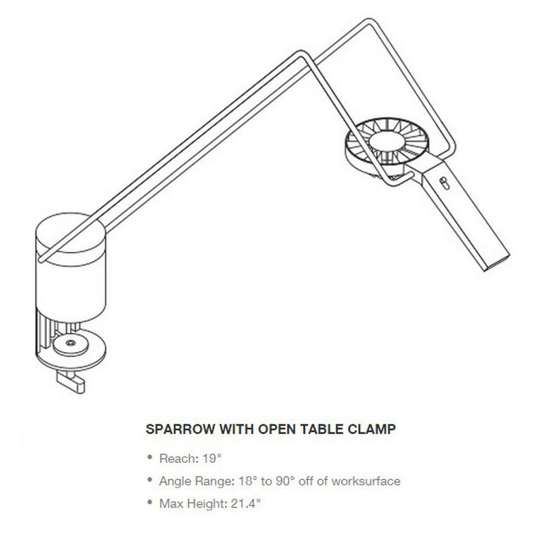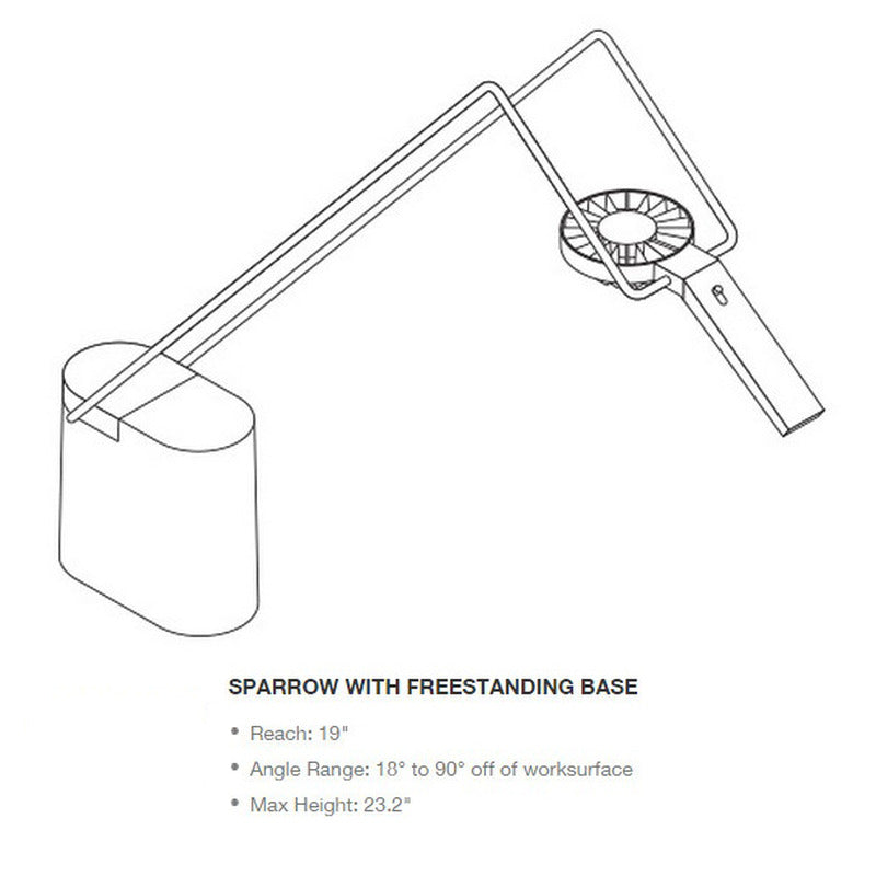 - Head freely rotates 360 degrees to provide direct light down to the work surface or, if turned upward, ambient light to the room
