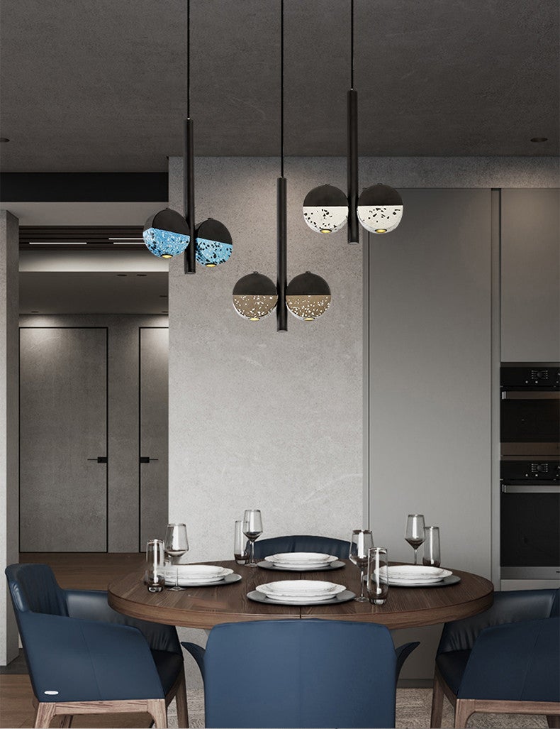 Minimal, vibrant and beautifully crafted, The Suie pendant is characterized by its bold profile and arresting visual textures. The patterns that are created by the grains of this material once it flowed and un molded is what gives this creation its originality. Suie may be used in singular form, a linear arrangement or as a chandelier of multiple pendants, suitable for residential, hospitality and commercial settings.