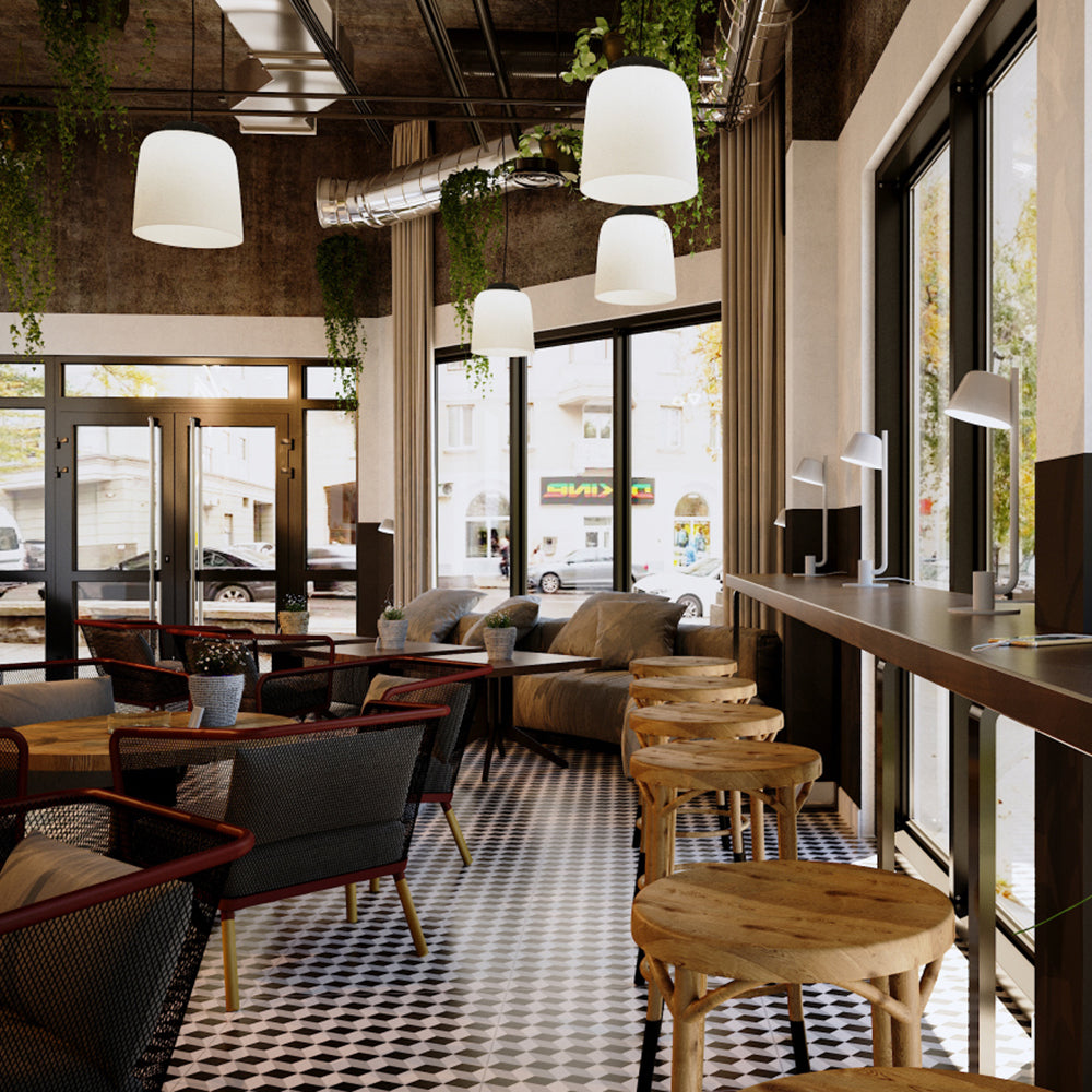 - Diffuser: opal white blown glass