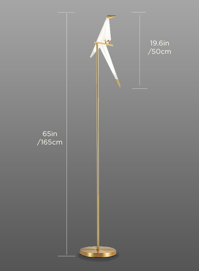 The Birds LED Floor Lamp captures the quiet grace of a birds sitting on a branch and brings that simple beauty into your home. This inventive fixture combines the splendor of nature with the intricacy of origami. The birds themselves, made from synthetic non-flammable paper with brass accents, are illuminated from within, giving off a warm glow to softly brighten any living space.