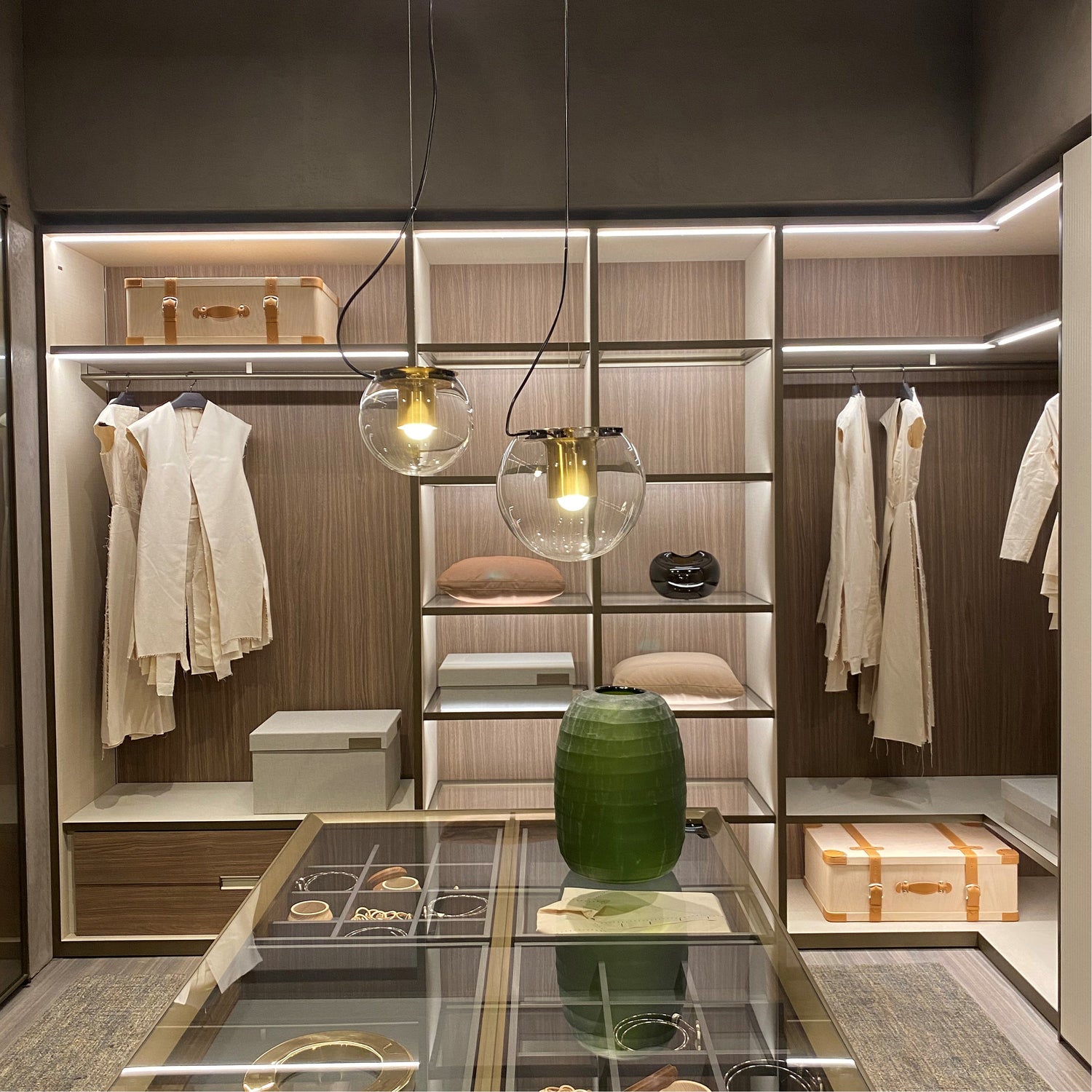- Suspension lamp giving direct and diffused light in transparent blown glass