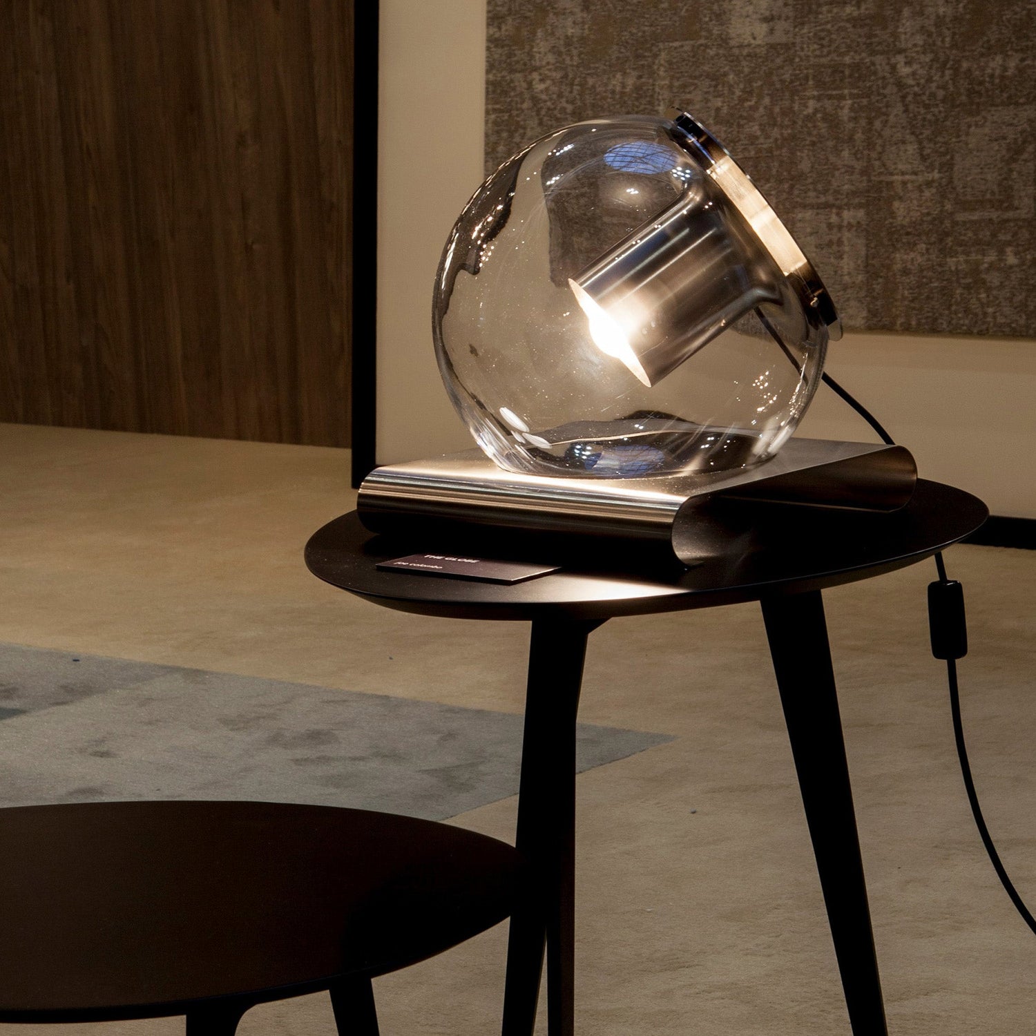Originally designed by Joe Colombo in 1964, the Globe Table Lamp offers a spherical design that is sure to make a striking impact in your favorite living and entertainment spaces. Showcasing a transparent blown glass shade and metal reflector plate, this timeless design offers directly diffused light for the perfect glow to accentuate and elevate any room in your home. Station on a side table to provide a touch of brightness while enjoying an afternoon read, or utilize as a task lamp in your at-home workspace for a sleek and chic touch that effortlessly transforms your contemporary space into a stylish masterpiece.