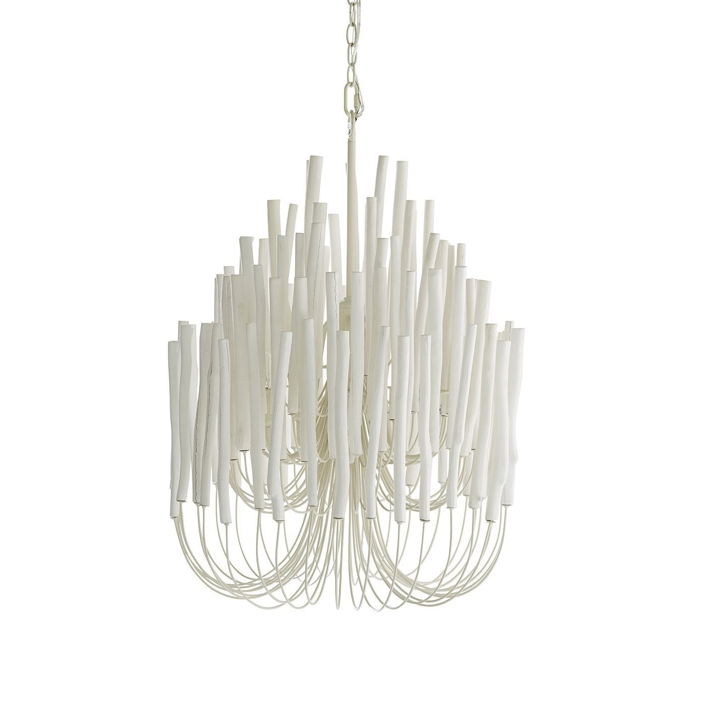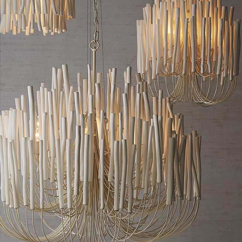 Graceful and elegant, with an eye-catching, layered silhouette, the Tilda Chandelier from Arteriors is a striking luminary ready to bring a soft glow to your favorite interior spaces. Showcasingseveral tiers of painted wooden sticks on pliable, curved iron arms, when switched on, the light glows from within and transforms your roomintoa visuallymagical space. The perfect lighting accent for a variety of spaces from coastal chic to sophisticated Scandinavian, this handcrafted chandelier ands visual appeal that draws the eye upwards making for a glowing focal point ready to accent any contemporary home.