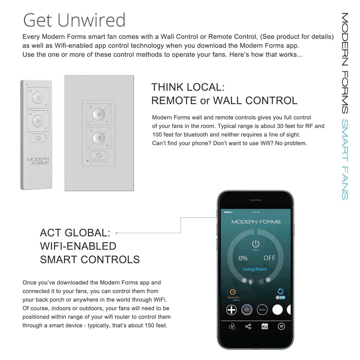 - Free app download: Sync with our exclusive Modern Forms app to control fan speed, use smart features like breeze mode, adaptive learning, create groups, and reduce energy costs; New: Bluetooth compatible for improved range and an unlimited amount of fans can be control with remote or wall control within range