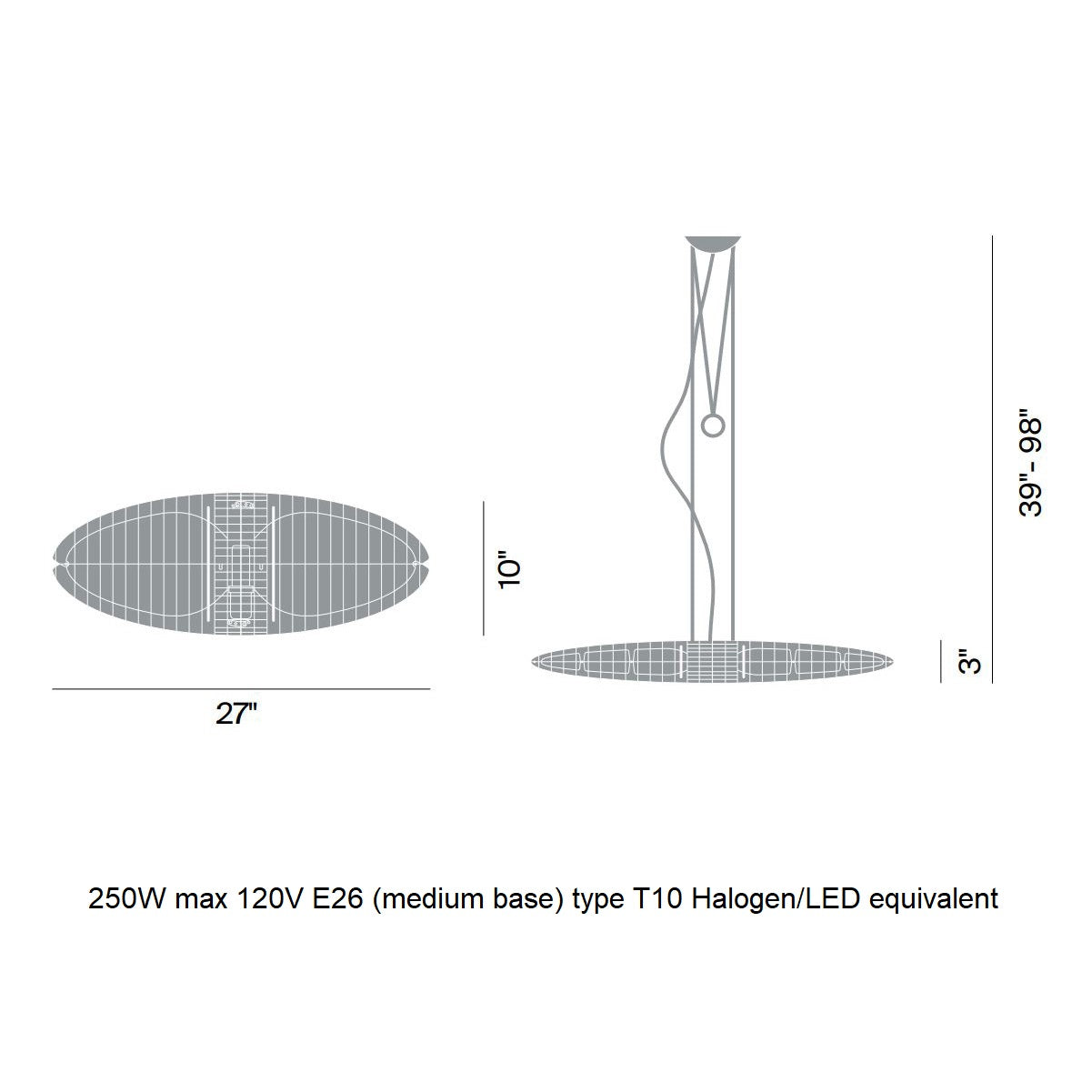 Lightweight and versatile, this lamp can change color without altering white light emission thanks to a pair of polycarbonate filters. The arrangement of the aluminum ribs reflects light and conceals the bulb inside a transparent, surprising shape. The spherical counterweight permits height adjustment.