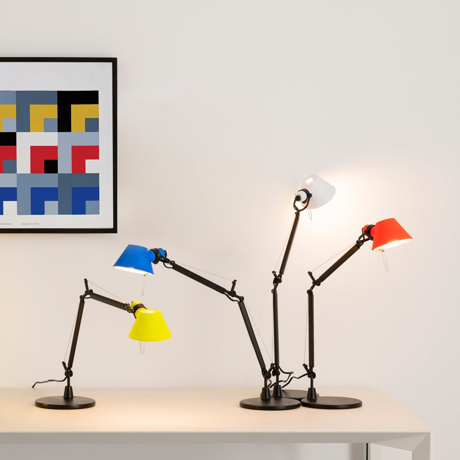Artemide takes their iconic design into primary position with the new Tolomeo Bicolor Desk Lamp. Originally inspired by the mechanism of industrial fishing nets, the Tolomeo design was an instant classic since its introduction in 1987. It's a popular task lamp because it enables targeted lighting options from its easily maneuverable lamp shade, atop the balanced arm design. It's a visually striking design with a sleek silhouette (designed to hide internal wiring) and is found atop stylish desks of architects, designers, and design enthusiasts worldwide.