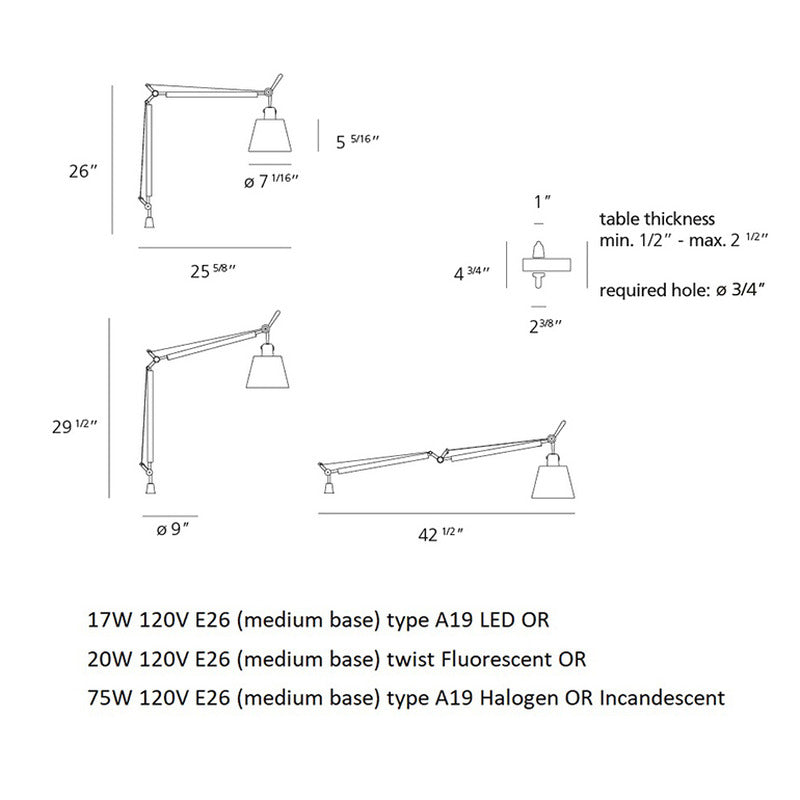 Table standing luminaire for adjustable direct and diffused task lighting.
