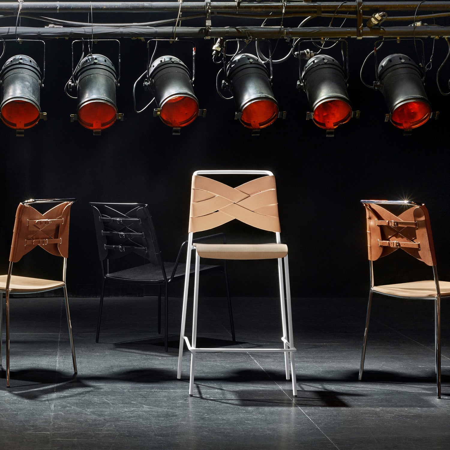 Designer Lisa Hilland dreamt of creating furniture that combined both of her interests ¨C fashion and design ¨C in a self-evident manner. After a great deal of thought she came up with the Torso chair designed for Lisa Hilland's Torso is the chair, which as a bare torso, can be dressed. For 2018 she has expanded the collection with a barstool and a lounge chair. The woven leatherback is inspired by the traditional hunter chair and gently flirts with Swedish craft traditions. The chairs are modest in their expression yet they are visually striking with their woven leather detailing.