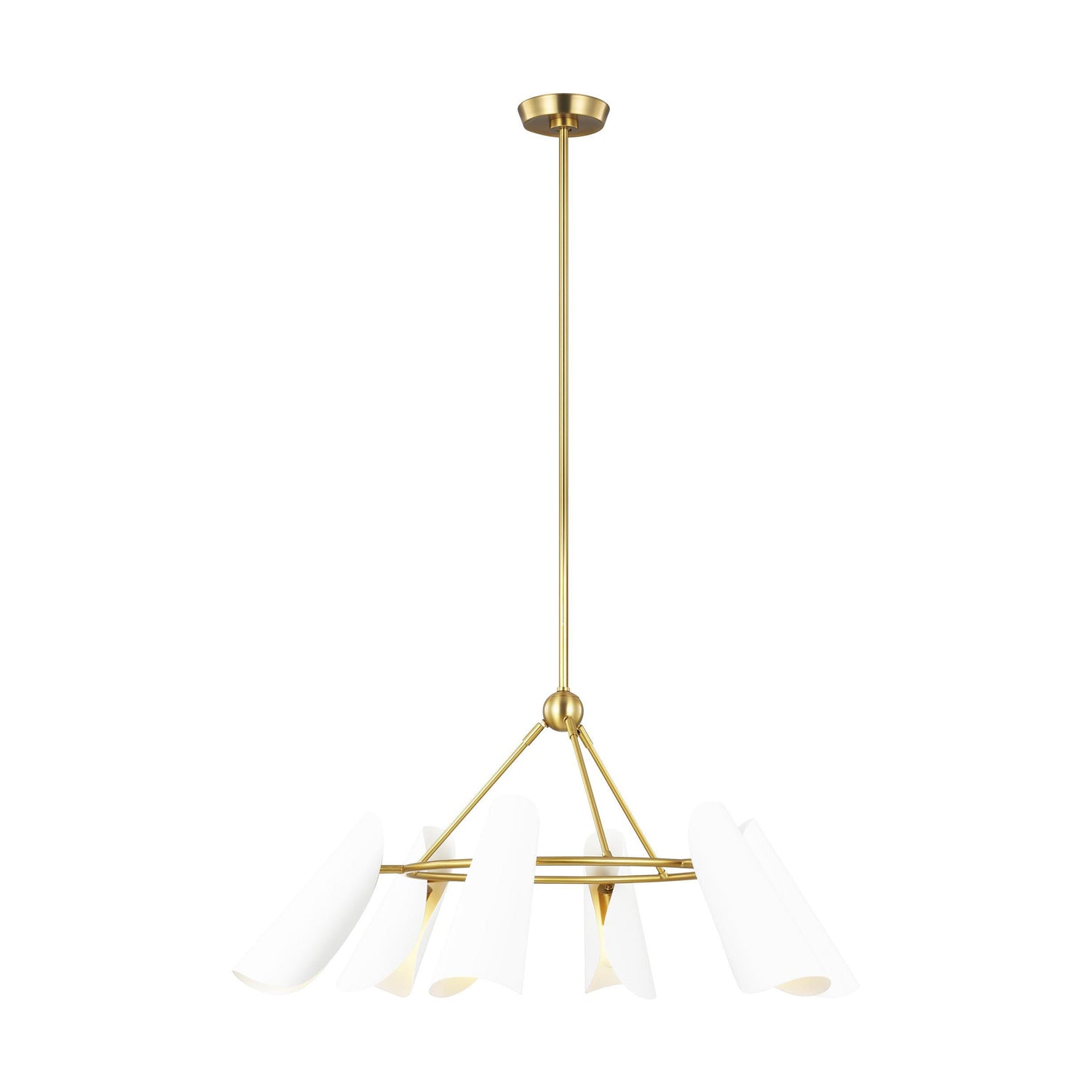 The Aerin Tresa chandelier is Mid-Century Modern in character, while the conical shades are designed with an open edge to allow additional light to pass through, as a contemporary twist. A stylish focal point in high-ceiling spaces, such as an open staircase.