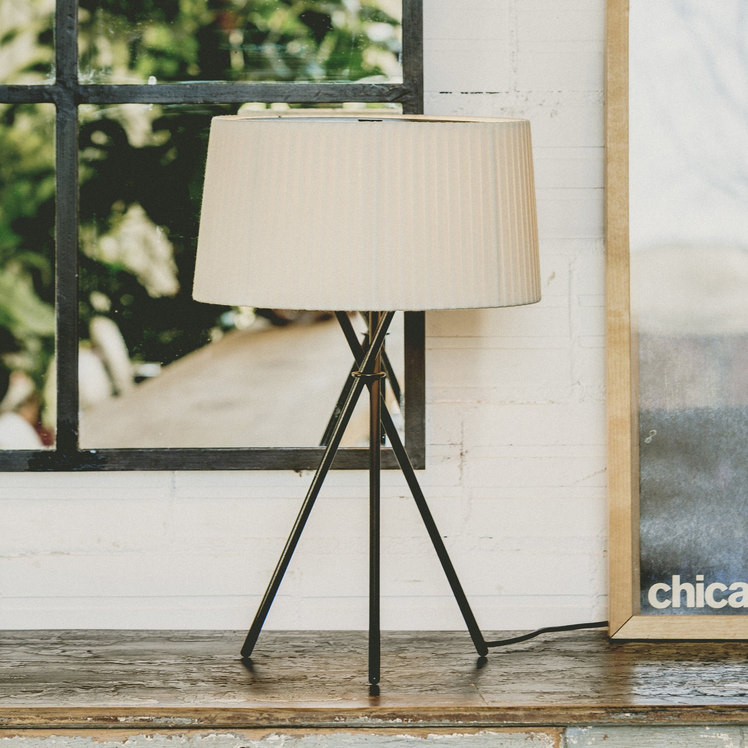This set of three crossed metal tubes resembling Chinese chopsticks that support an ample ribbon shade without the need for a base was something of a revolution in Santa and Cole's catalog and celebrated its fifteenth anniversary in 2010. It is a family of lamps designed to create warm atmospheres, arouse sensations and liven up monochromatic spaces.