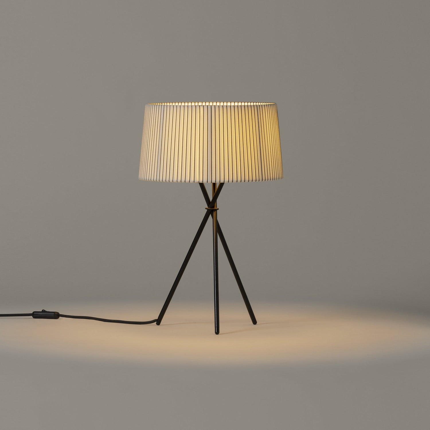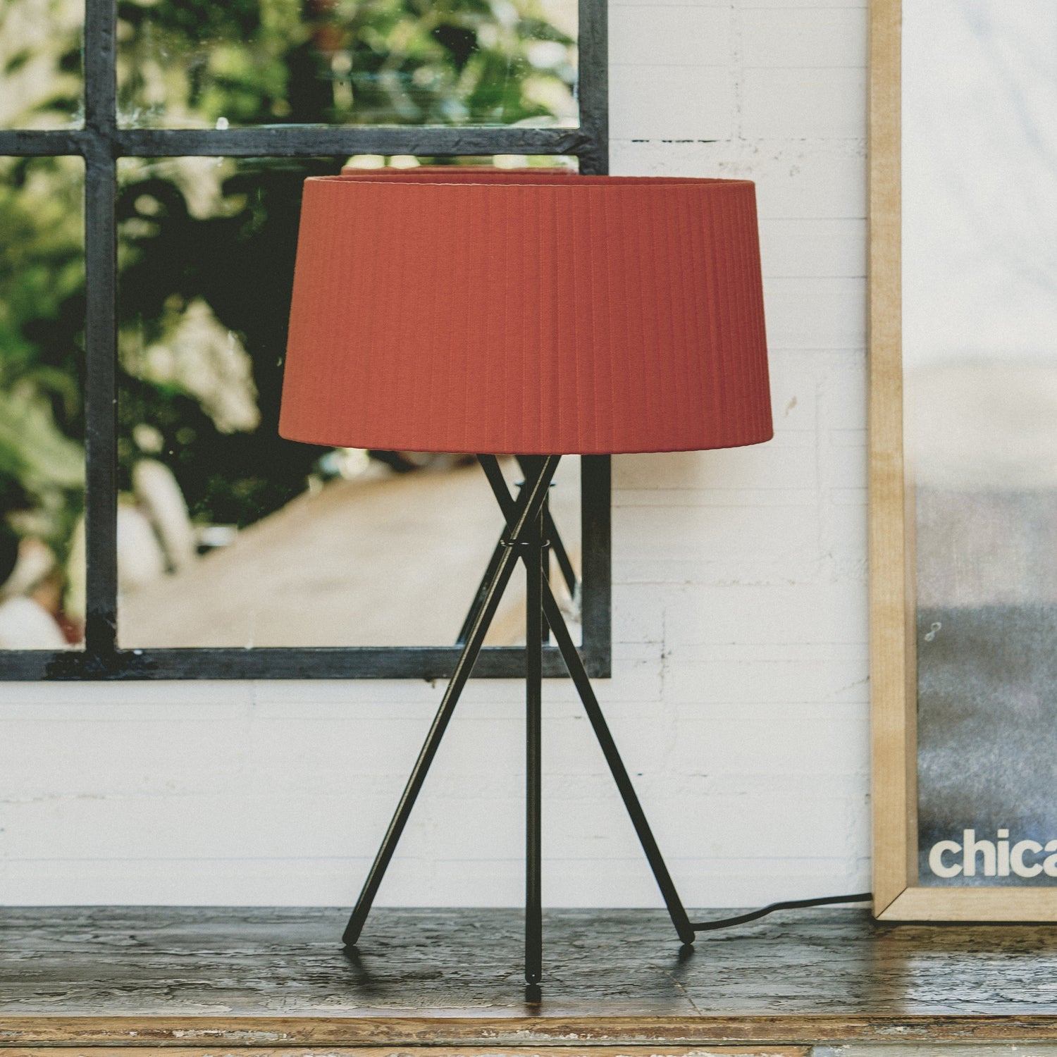 This set of three crossed metal tubes resembling Chinese chopsticks that support an ample ribbon shade without the need for a base was something of a revolution in Santa and Cole's catalog and celebrated its fifteenth anniversary in 2010. It is a family of lamps designed to create warm atmospheres, arouse sensations and liven up monochromatic spaces.