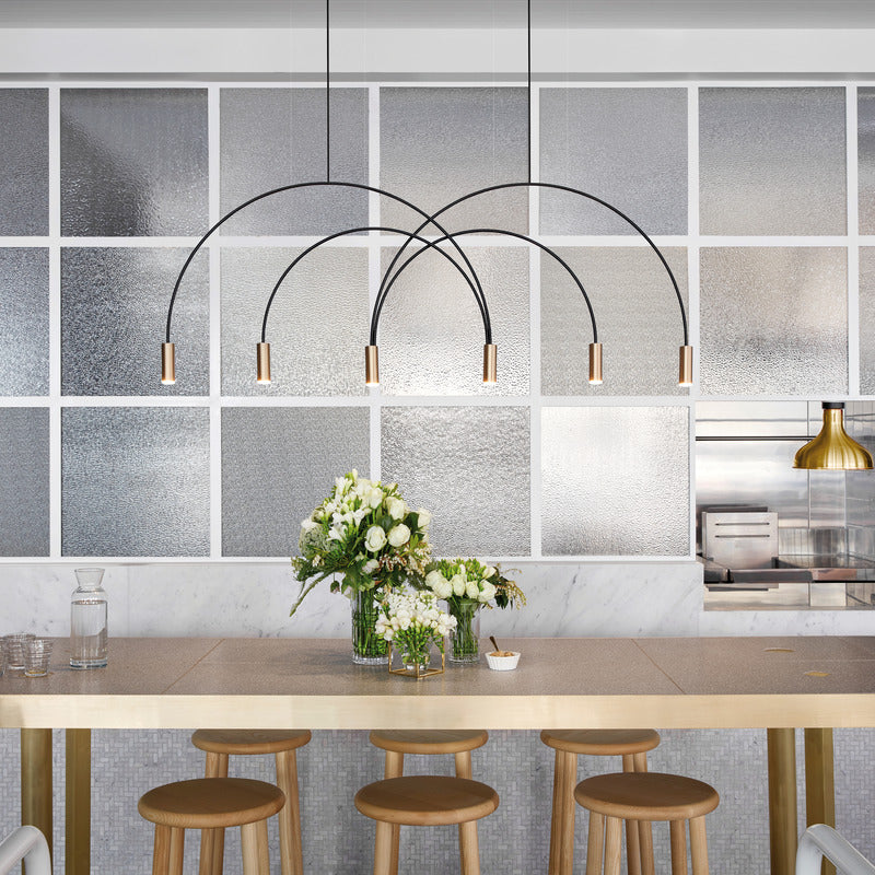 Delicate arches and simple cylinders in a family of lights which can be used singly or in clusters of brilliance. Aluminum heads with acrylic diffusers.