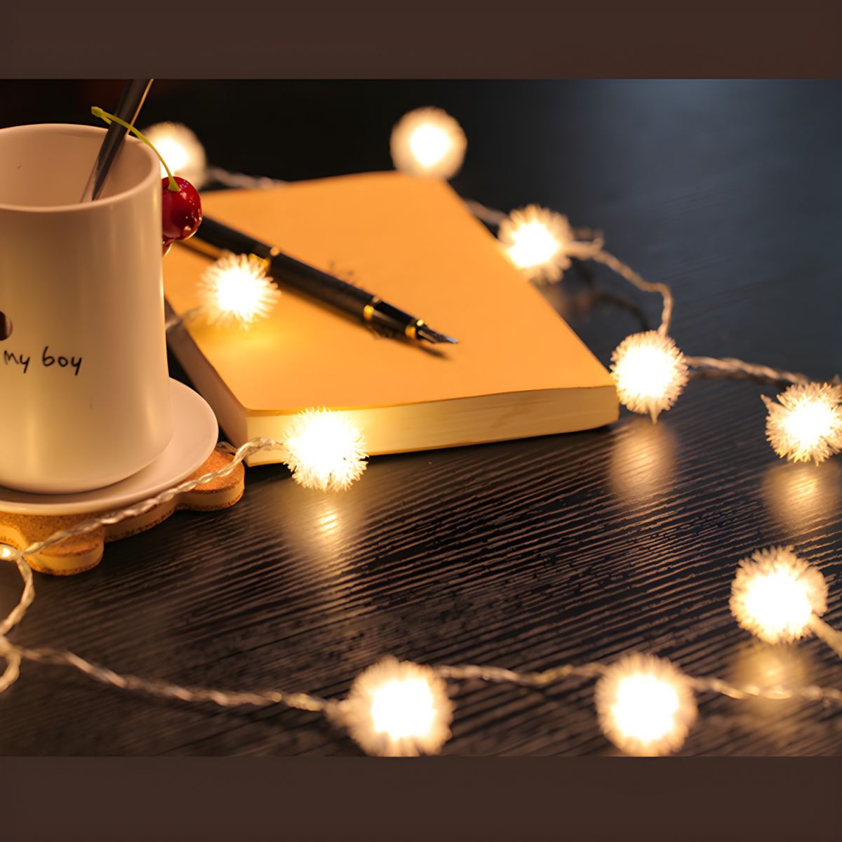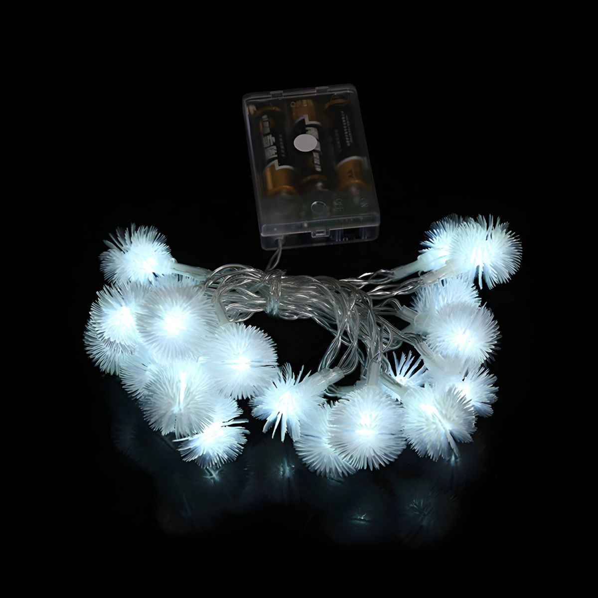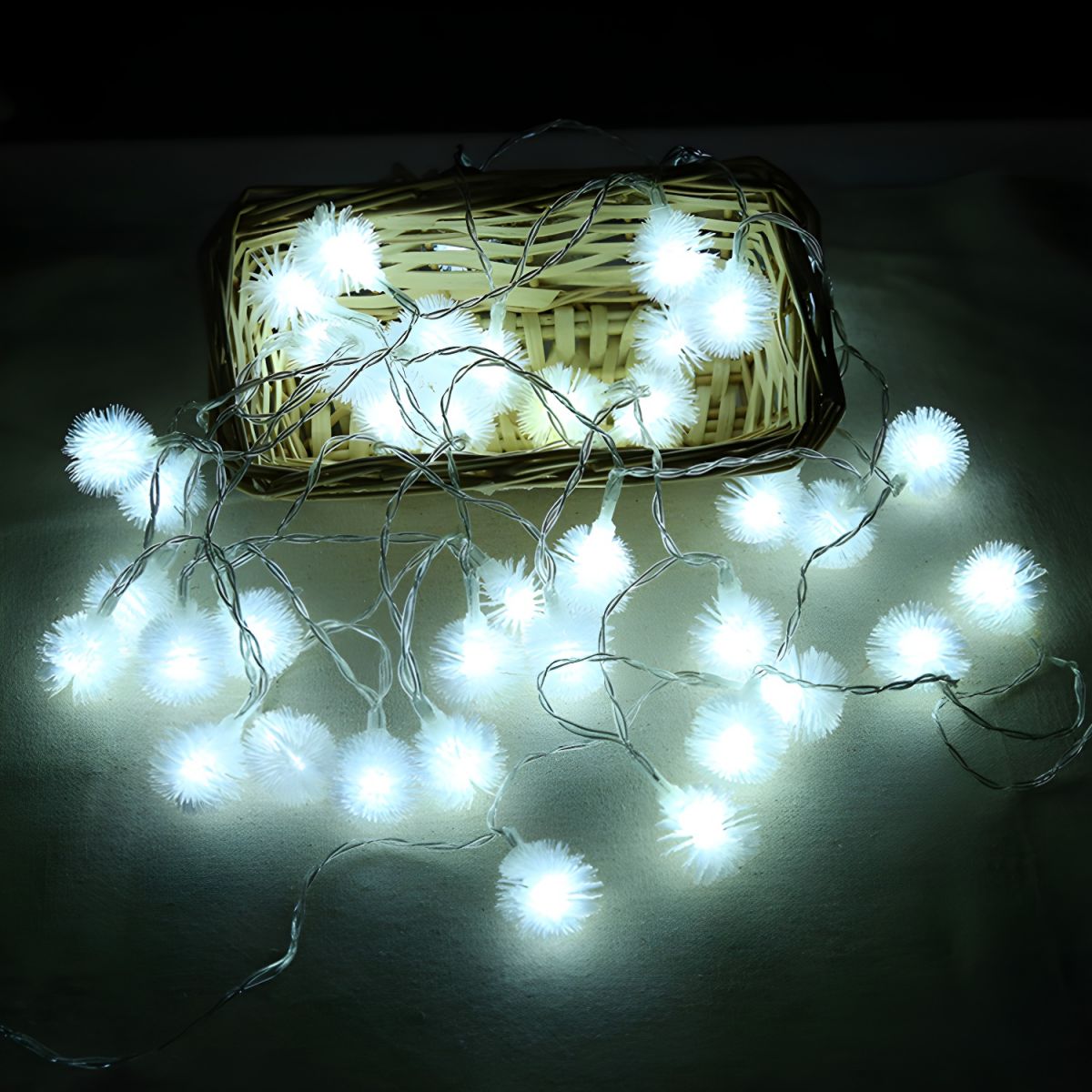 White Pompom LED String Light Modernism Plastic Solar Festive Light for Outdoor