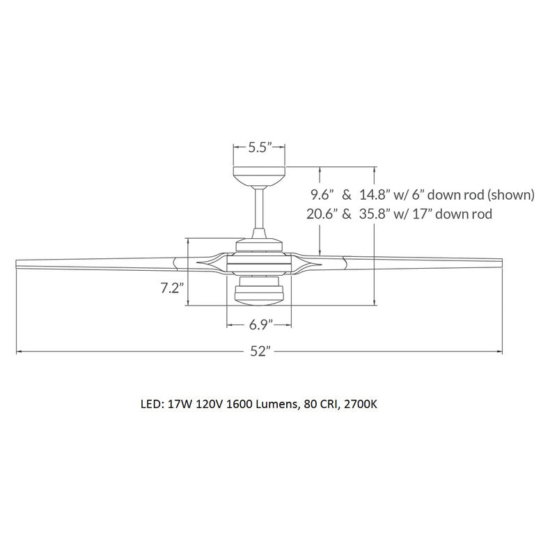 - Available in Bright Nickel, Dark Bronze or Gloss White fan finish