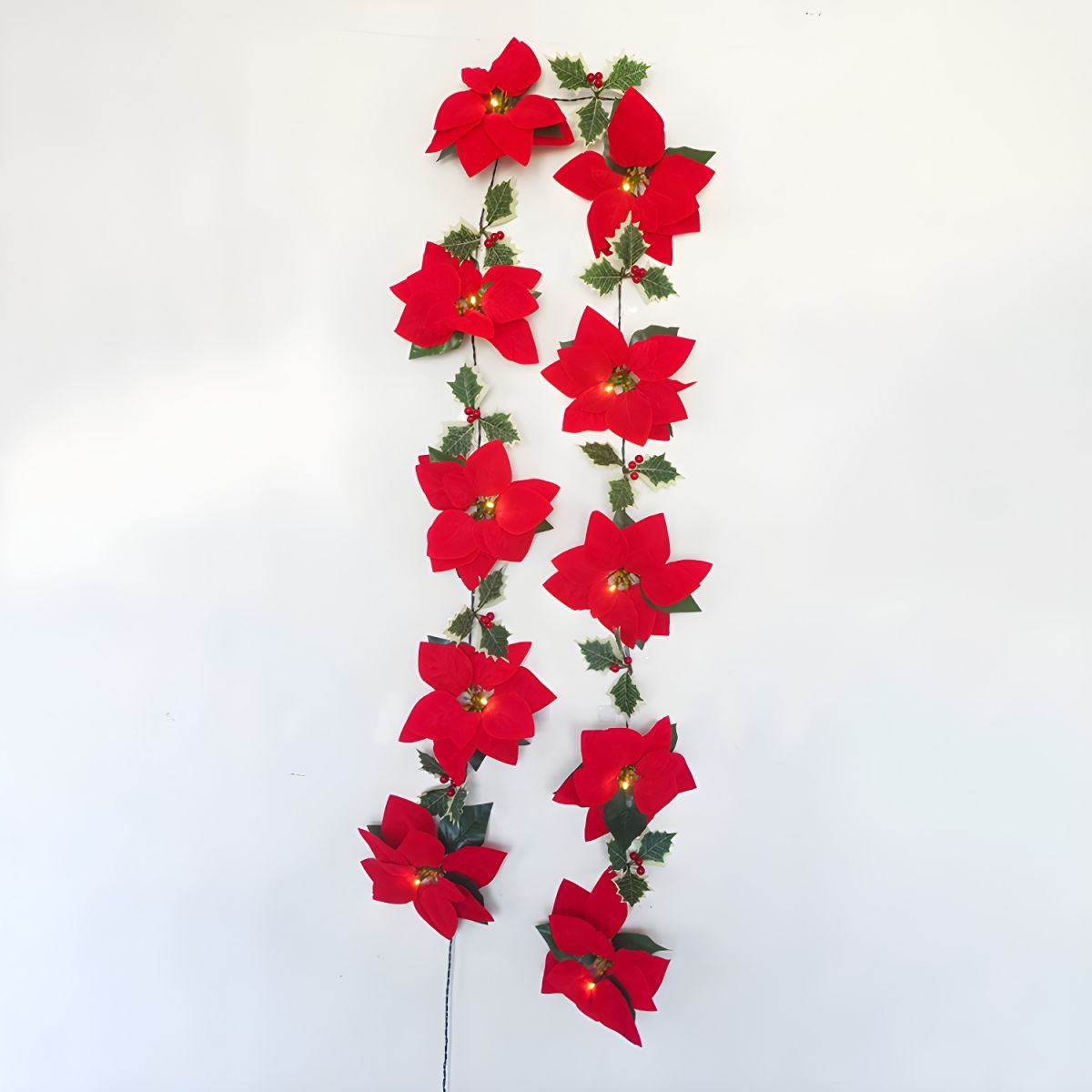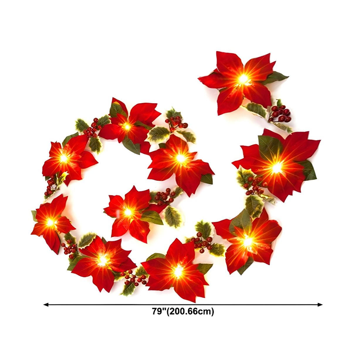 6.5ft Red Flower String Lighting Art Deco 10-Light Fabric Festive Light