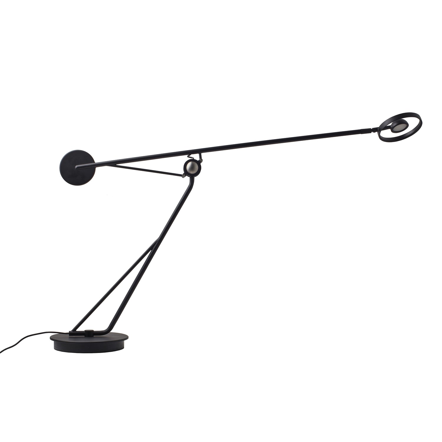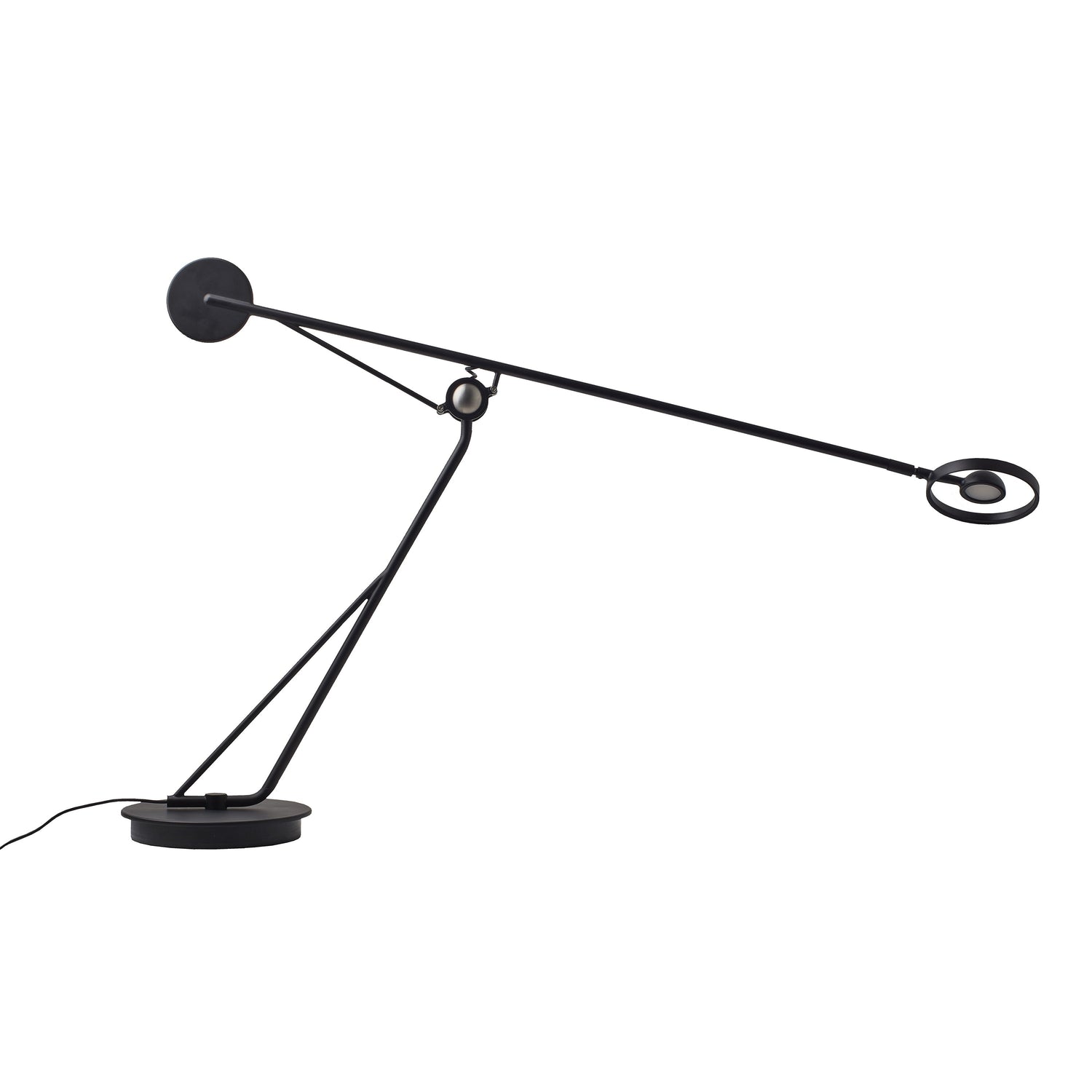 Table lamp in steel and aluminum. The starting point of Aaro was a gesture. A movement. Simon Schmitz wanted to create an as fluid motion as possible, which immediately lead him to the sphere. The end result is an object that seems to be moved by the wind. It revolves effortless around it's centerpiece, like planets orbiting around each other.