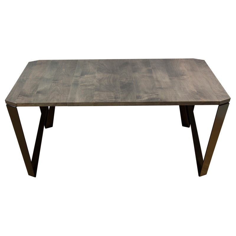 A design we kept up our sleeve for a long time is now on the table. Tapering and diminishing steel legs evaporate into the shadows beneath a hand-selected and finished solid maple top featuring a clip-corner shape. Each table is designed, crafted, and finished in the USA.