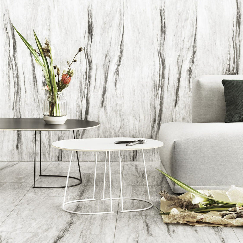 The Airy Coffee Table is designed with a light and airy expression through its clean lines and the table top almost floating above its thin steel frame. Available in three sizes alongside a half-side version, the Airy Coffee Table can serve a range of functions in a multitude of spaces with its playful yet quiet personality complementing any setting.
