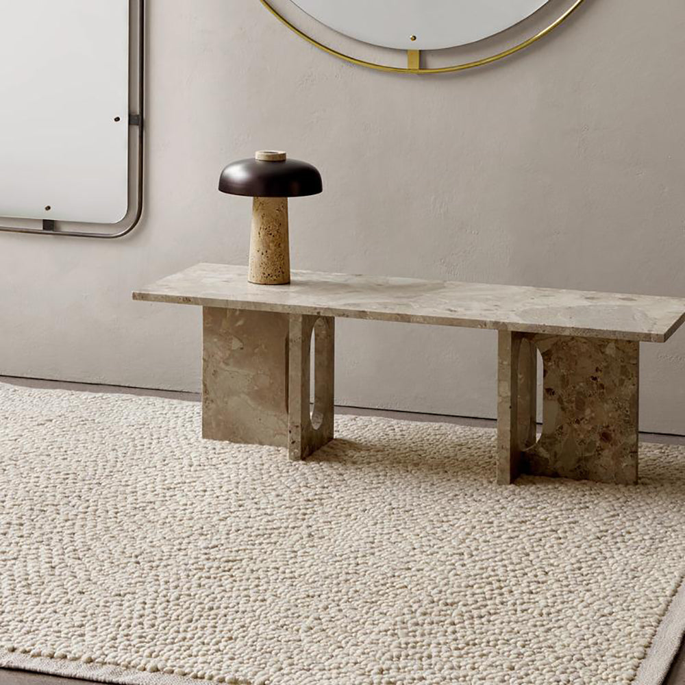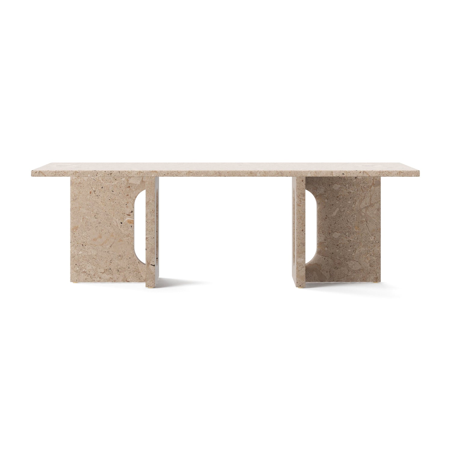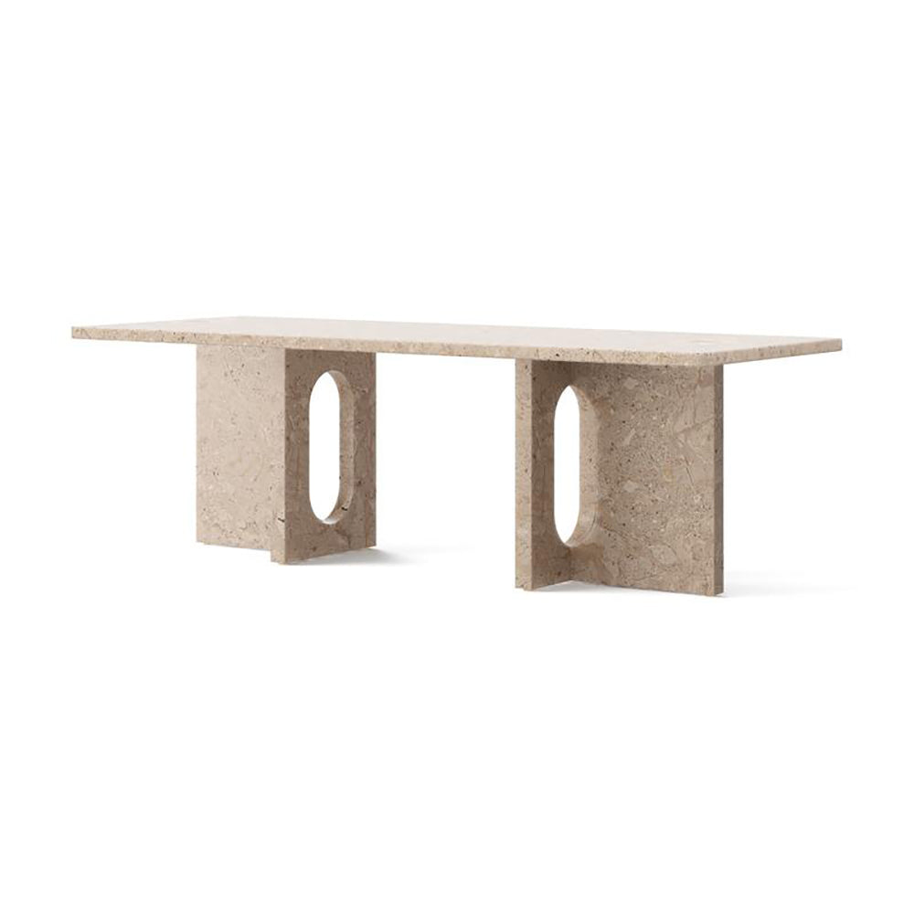 A monumental design crafted from Kunis Breccia stone, marked by characteristic veins and mineral fragments in warm hues, the Androgyne Lounge Table continues the simple silhouette of the collection while introducing natural materials and a shape and function made for everyday settings. The versatile design makes it possible to use as both a lounge table or bench piles of books or statement decorations.