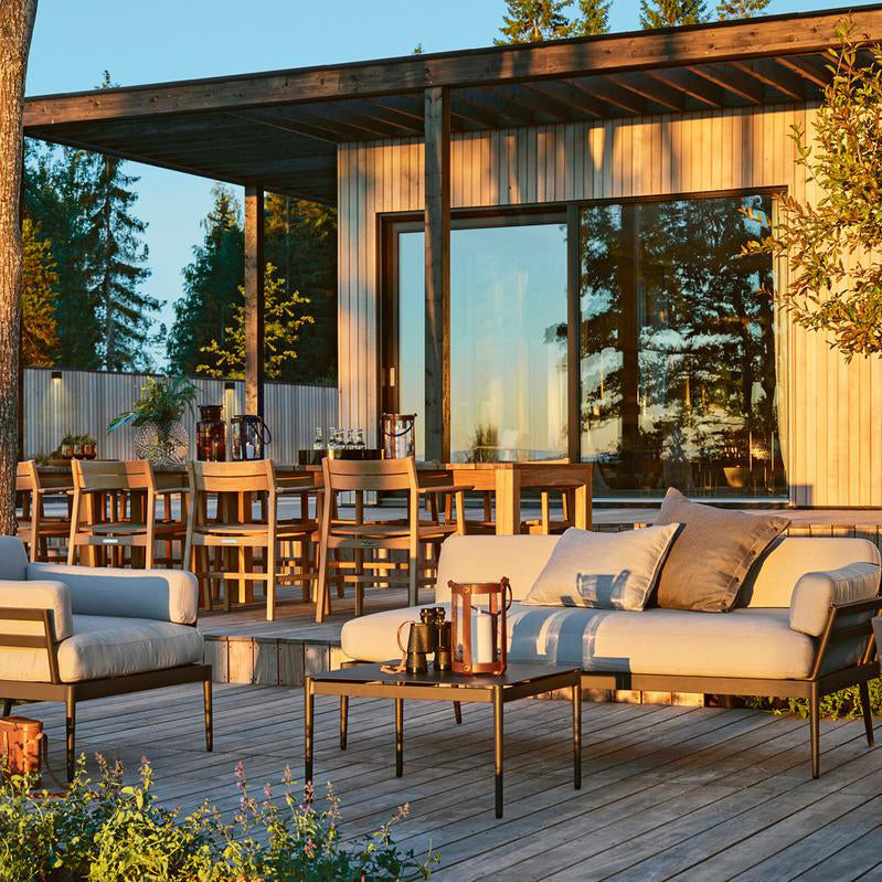 A range of modular lounge furniture, made of aluminum. Or, put another way, a range that looks good and is also maintenance-free.