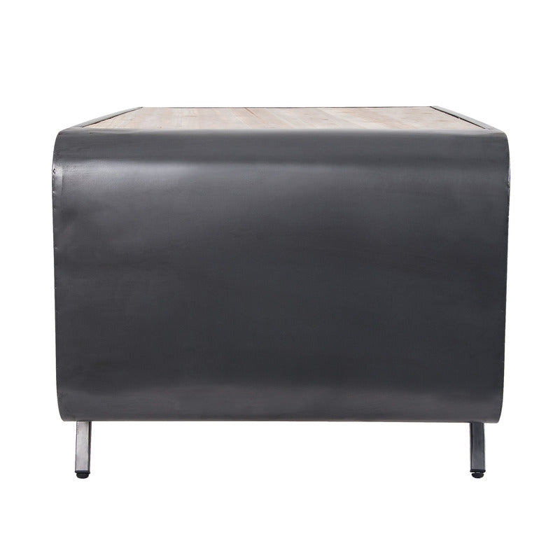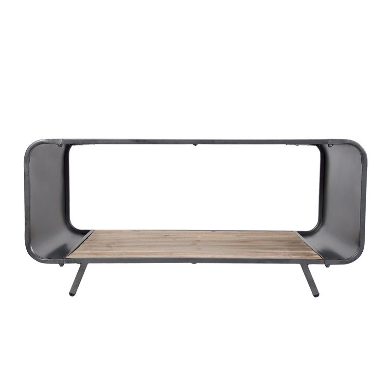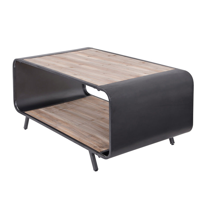 - Mixed materials of wood and metal rounded rectangle coffee table with spayed legs