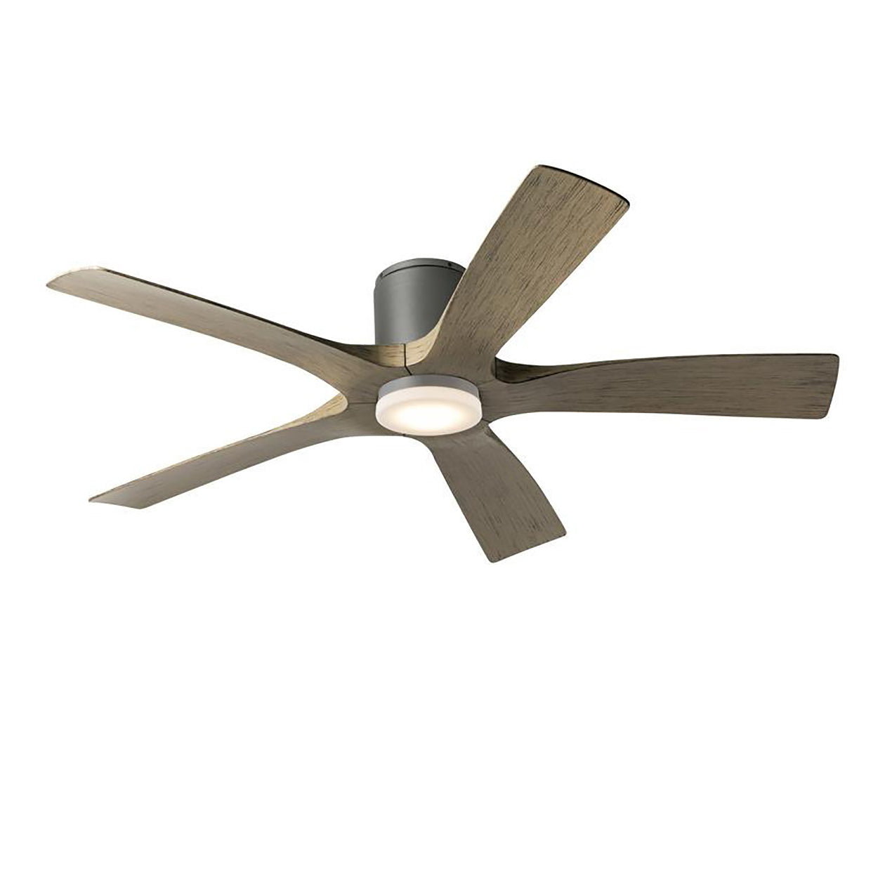 Inspired by the golden age of flying, the Aviator Indoor/Outdoor Flush Mount Ceiling Fan from Modern Forms uses smart fan technology to take air circulation and room cooling to the next level. Outfitted with five blades for maximum distribution and total circulation, this ceiling fan can be paired with the exclusive Modern Forms app to save on energy costs and intuitively create schedules that adapt to your behavior. Two simulated wood finishes contrast with the matte black or graphite housings for an understated look that brings a rustic tough to both indoor and outdoor spaces.