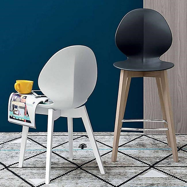 Using a mix of materials, such as solid beech wood for the frame and four legs and polypropylene for the shell of the seat, has allowed them to achieve a durable, lightweight and ergonomic stool that's design-savvy. Its shape evokes a Basil leaf, thanks to the central nervure, which is at the same time the structural and decorative motif of this product. An excellent furnishing choice for the kitchen, living area and cafeteria. Choose it in the combination you prefer!