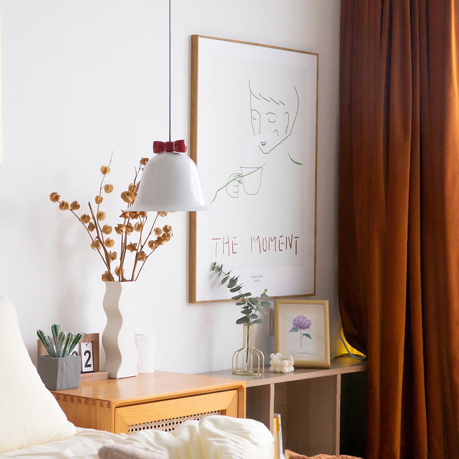 Experience the perfect ambiance with the Bow Bell Pendant Lamp. This stylish and modern lamp is designed with a charming and attractive bell silhouette, creating a cozy glow in any room. Enjoy the beautiful warm light and create a serene atmosphere in your home.