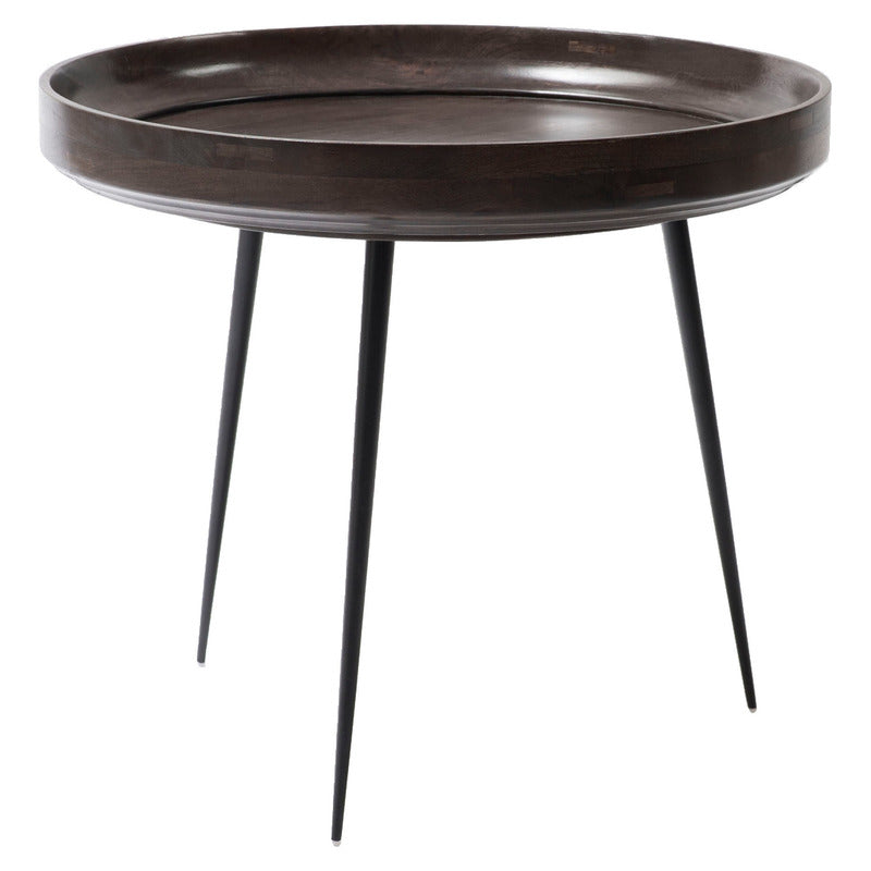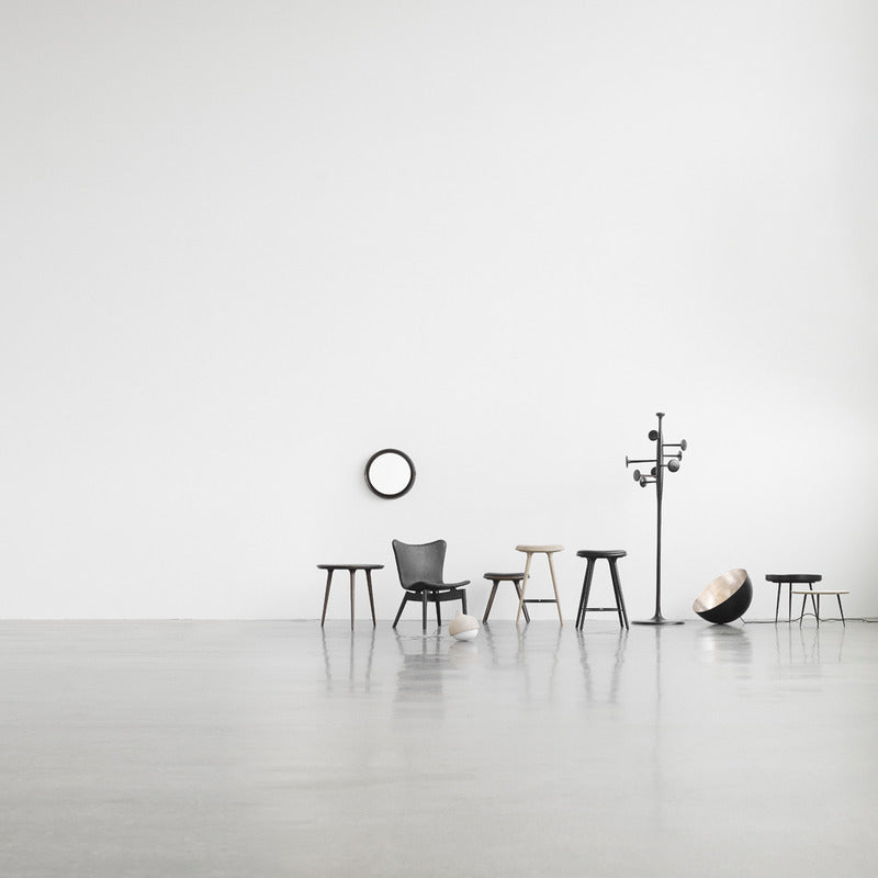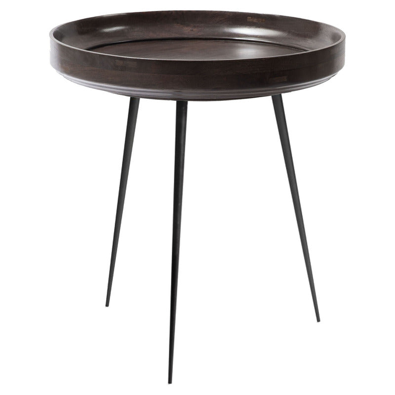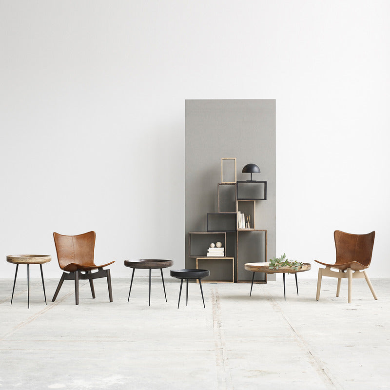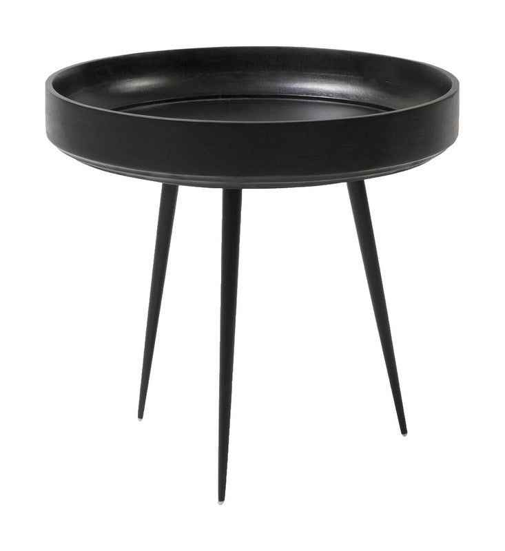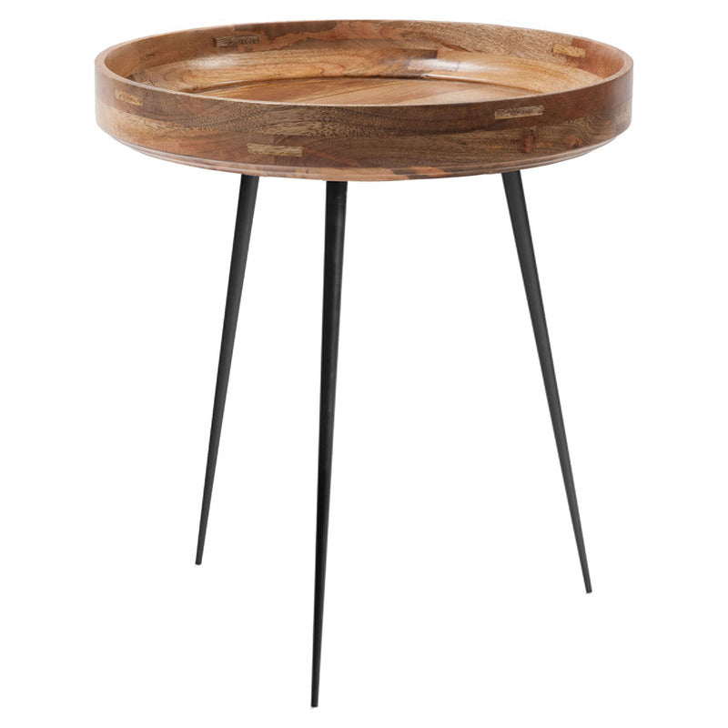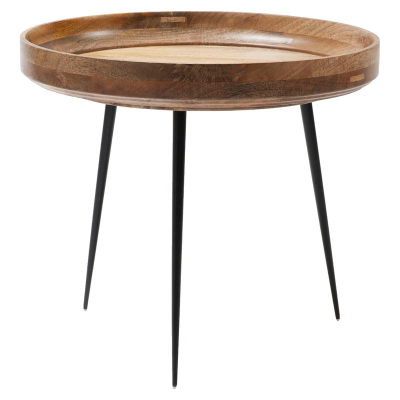 The Mater Bowl Table reconciles old Indian craftsmanship with the simplicity of Scandinavian design. The table top, made of sustainably sourced mango wood is turned on a lathe, showcasing the skill of Kharadi, an Indian wood turning community and supporting their local craftsmanship. The Bowl Table can stand alone or be paired as a side table vignette. The finish used on the table top is a lead-free, water-based PU lacquer. The legs are made of milled hollow steel rods and can be detached for ease of labor and transportation.