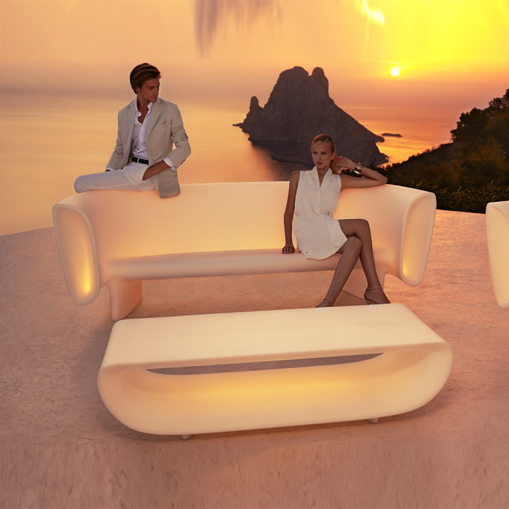 Crafted from tubular shapes allowing for experimentation with light and sound, the Bum Bum Coffee Table from Vondom is a visually appealing, all-weather table ready to elevate your indoor and outdoor spaces. Crafted in Spain from durablepolyethylene resin by rotational molding, this coffee table is 100% recyclable at the end of its life cycle. With ample surface area and an open space below, this coffee table can be topped with your favorite serving and decor pieces, while the lower area keeps your cell phone or favorite book out of the sun. Available in a wide range of color options from bold to neutral, this coffee table is ready to bring avant garde style to any contemporary abode.